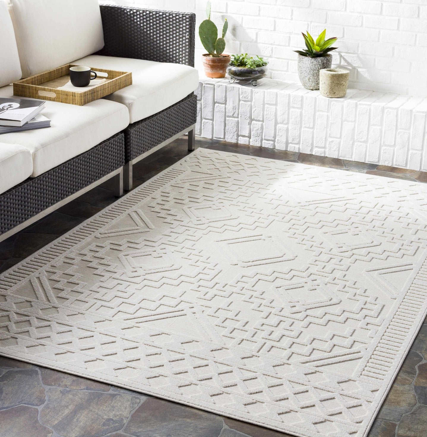 Machine Woven Modern Geometrical Off-White Outdoor Area Rug