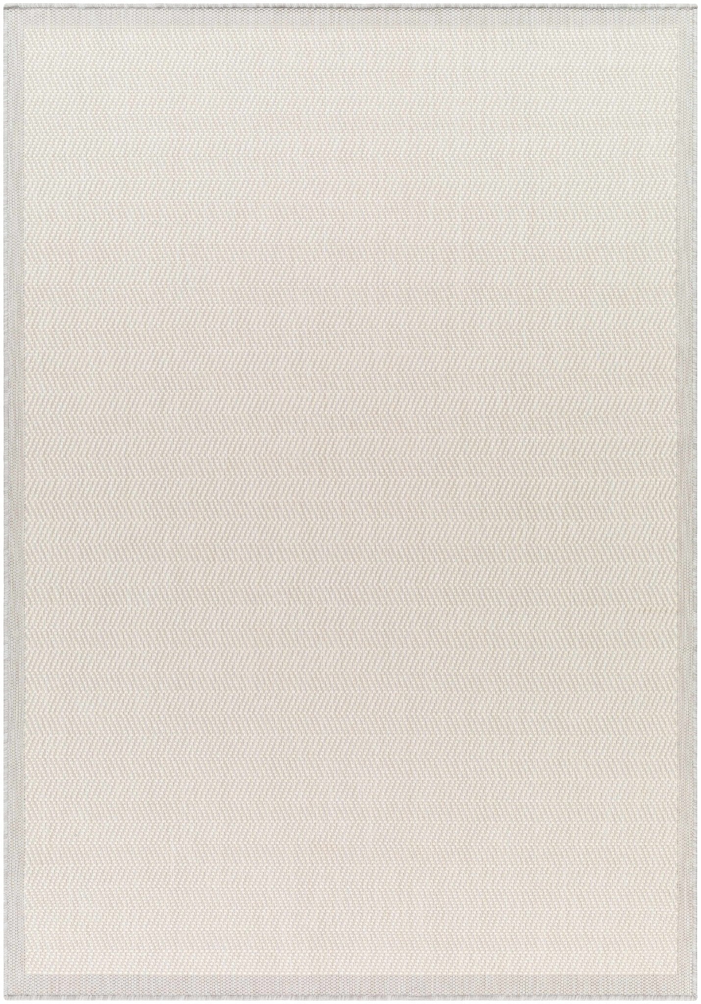 Silver And Ivory Contemporary Chevron Pattern Machine Woven Indoor/Outdoor Rug