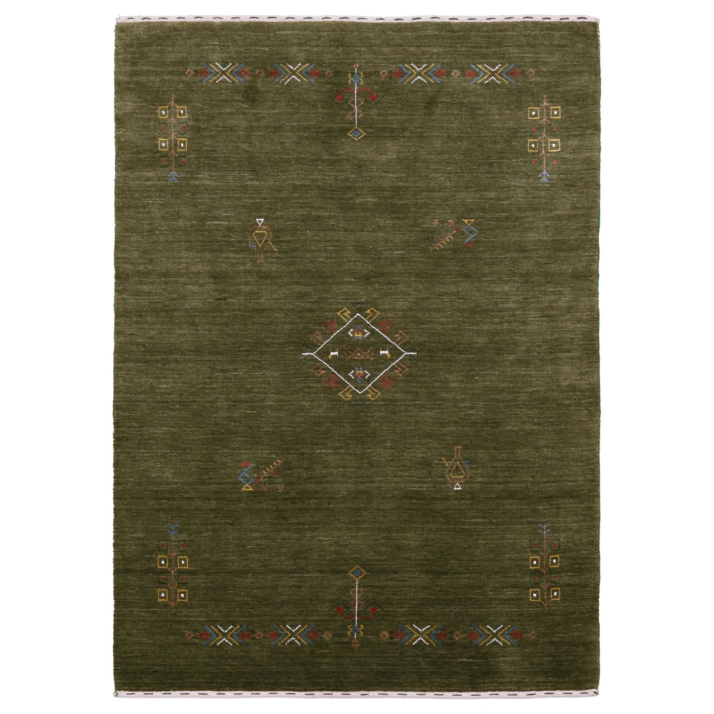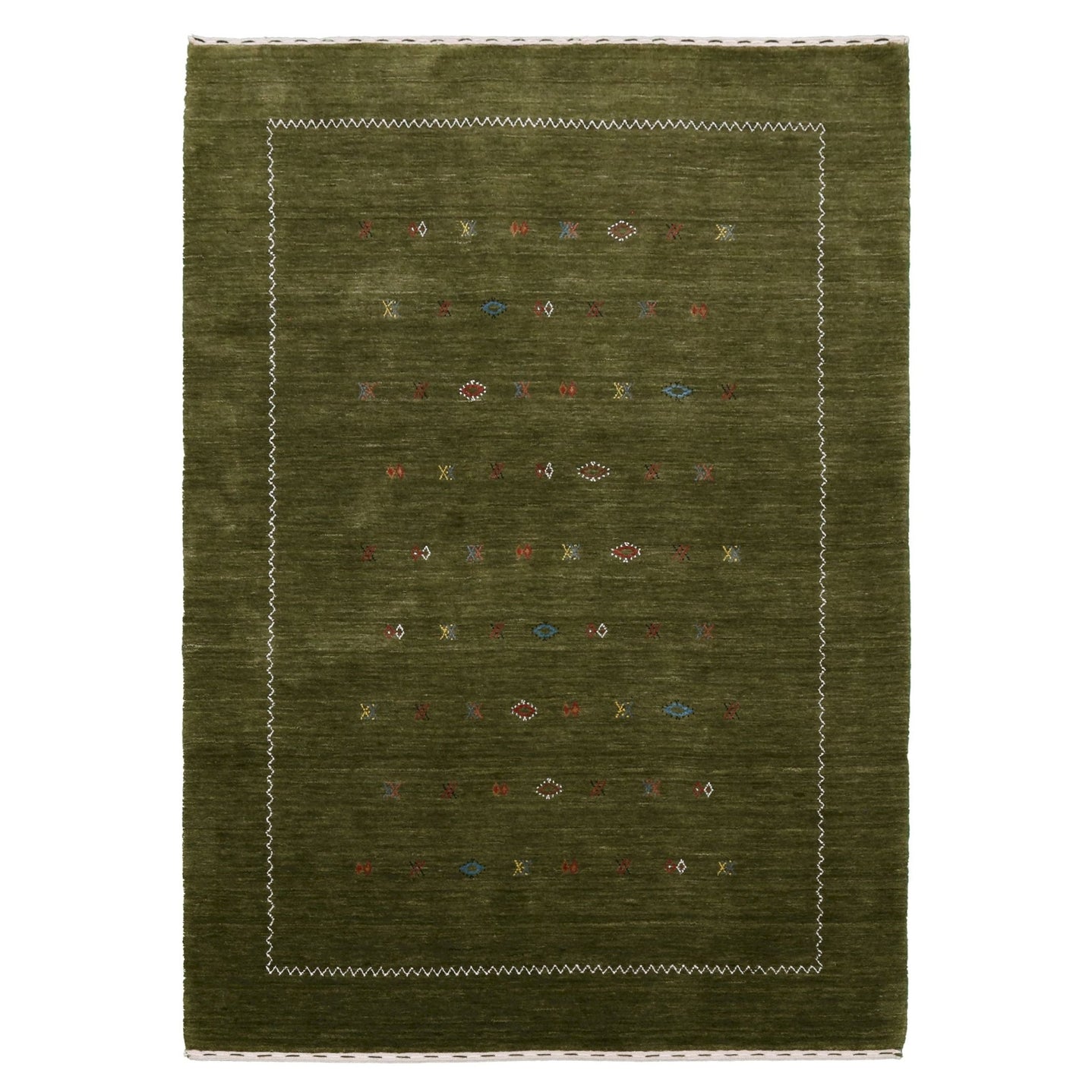 Gabbeh Design Hand Loomed Green Wool Area Rug
