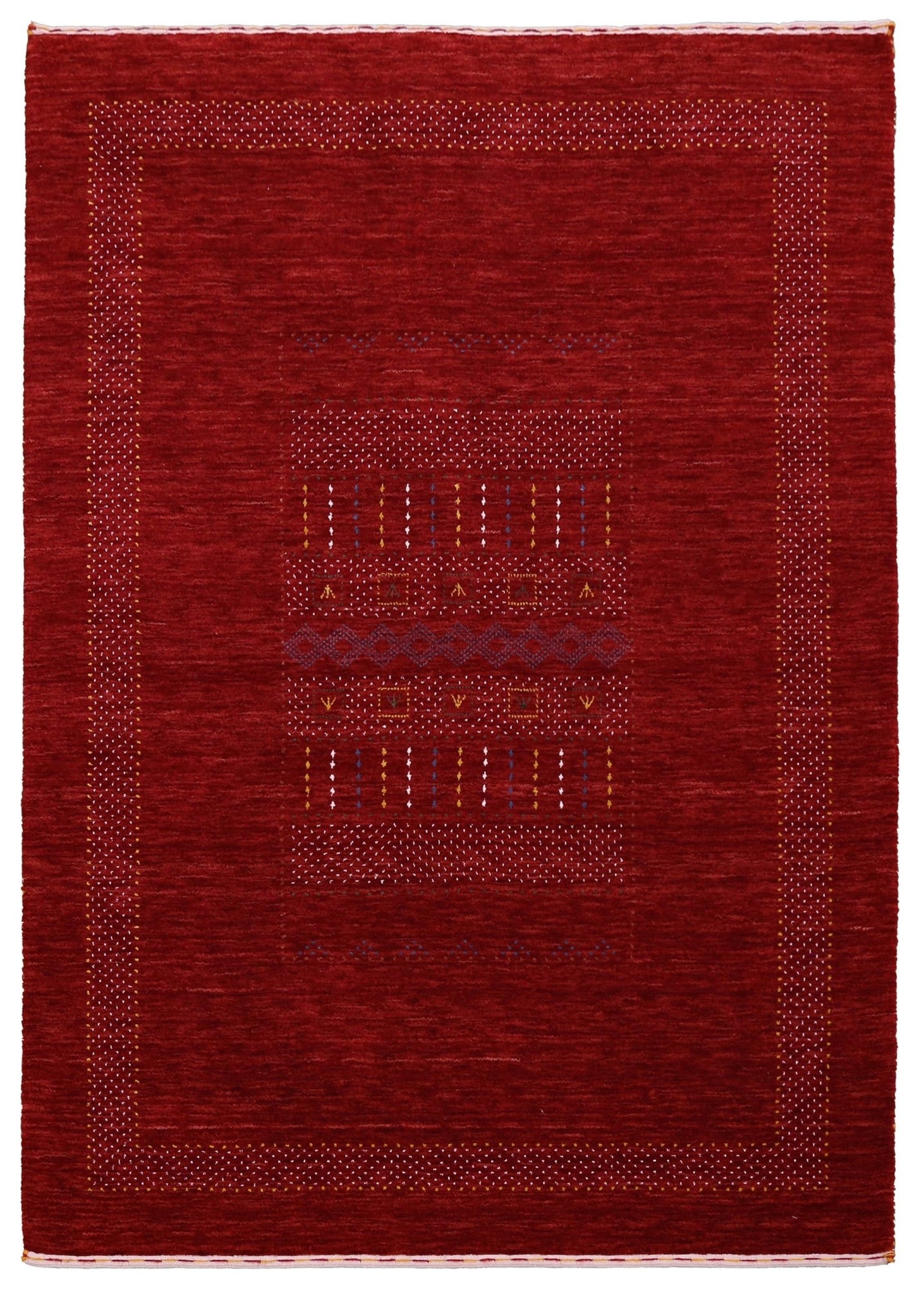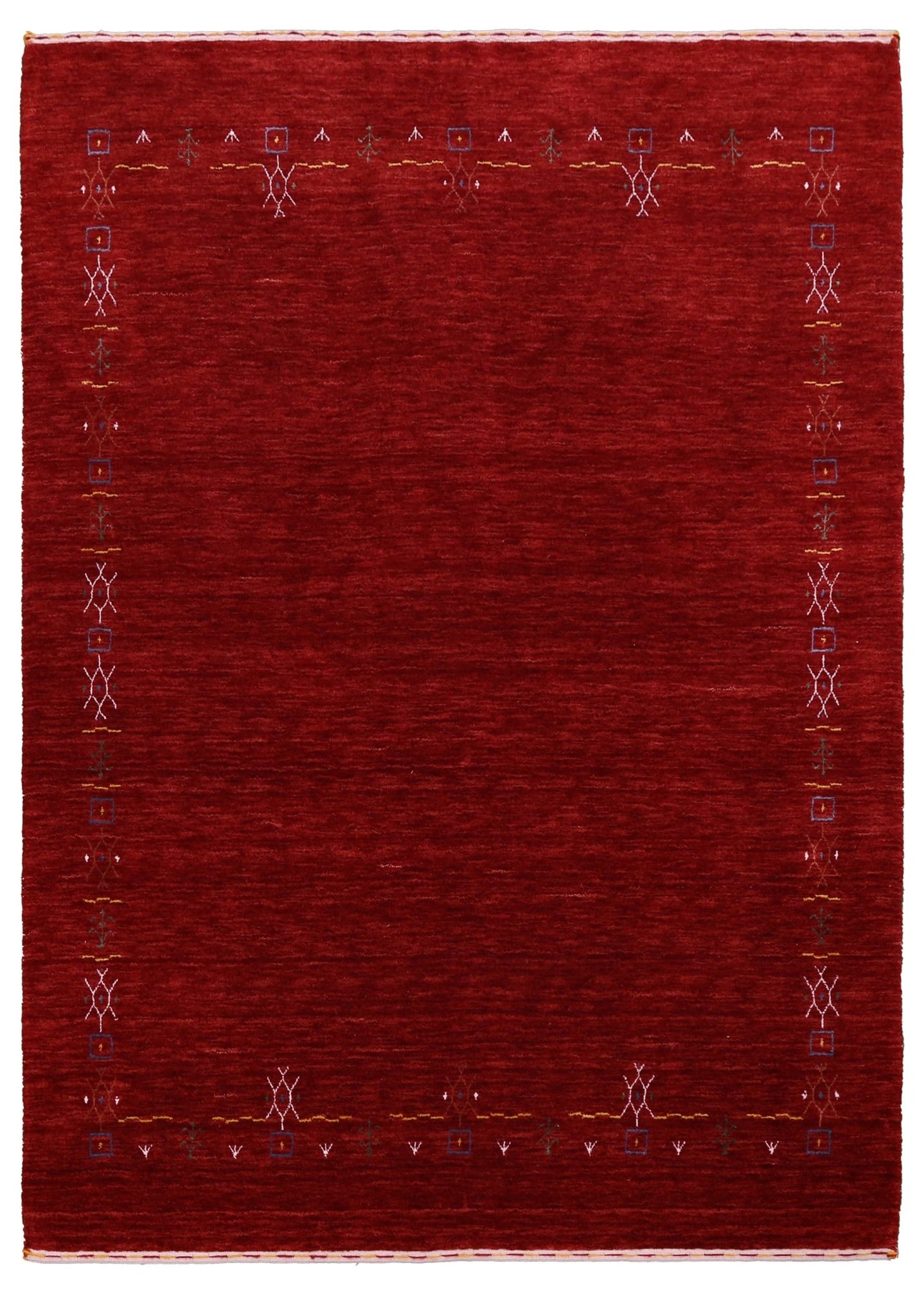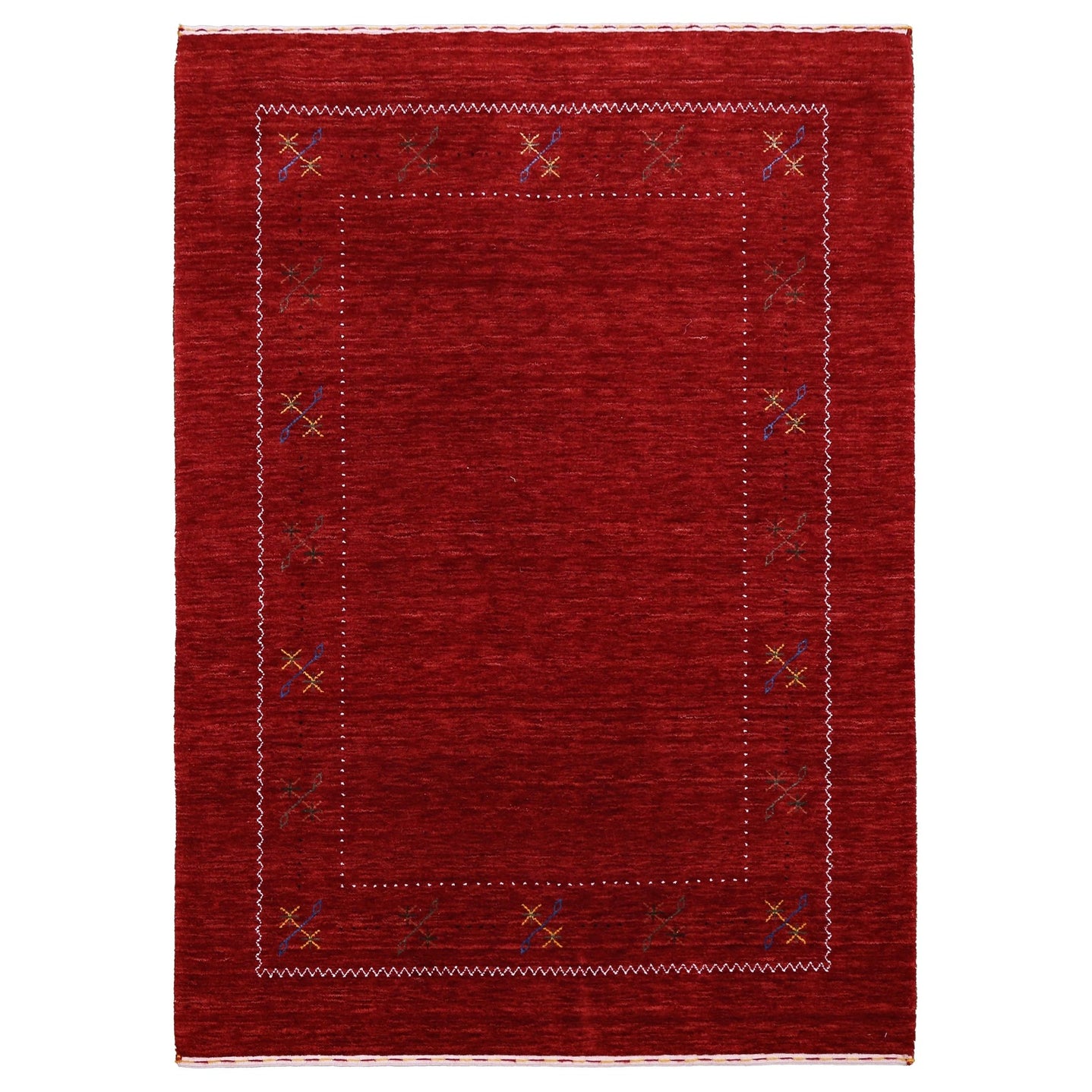 Red Gabbeh Border Design Hand Loomed Wool Area Rug