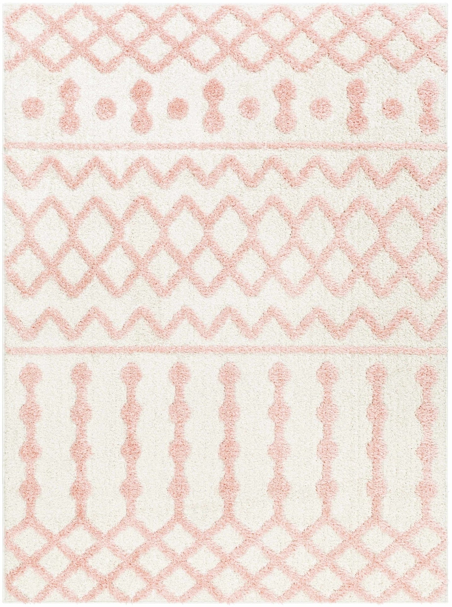 Textured Moroccan Style Ivory, Pink and Teal Traditional Design area rug