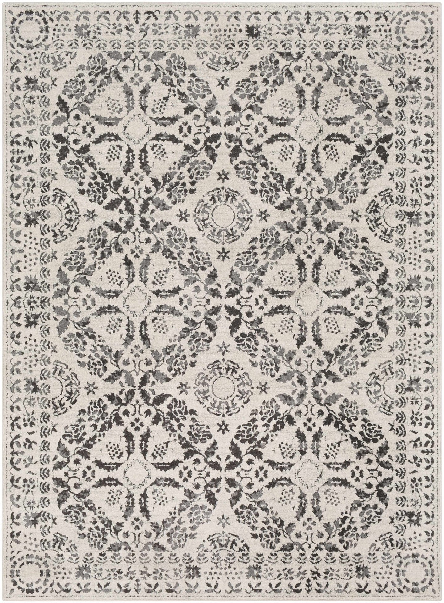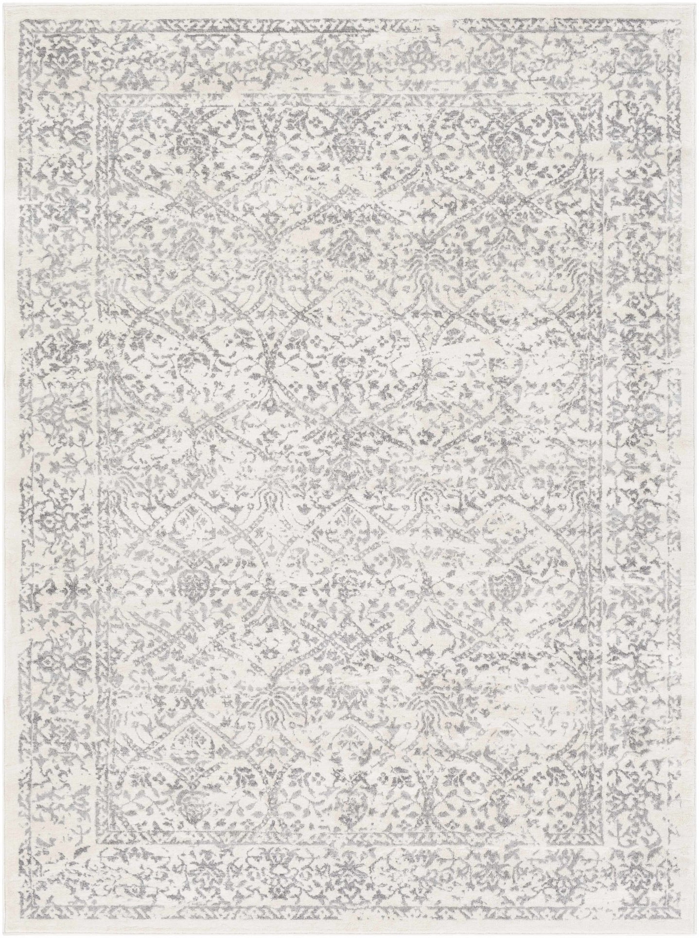 Antique Finish Brown, Silver and Charcoal Traditional Design Washable Area Rug
