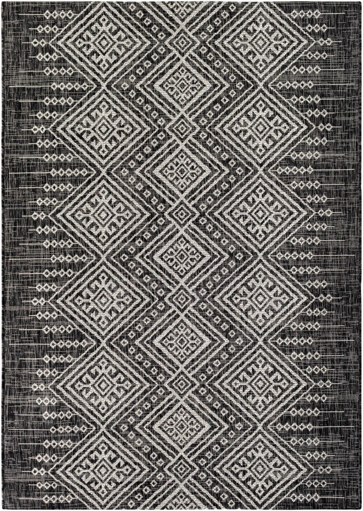 Modern Solid Plain Charcoal and Ivory Stripes Design Outdoor Safe Area Rug