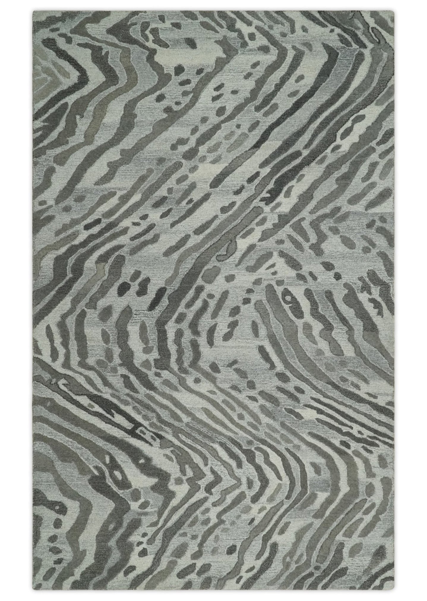 Contemporary Hand Woven Black and White Woolen Trellis Area Rug