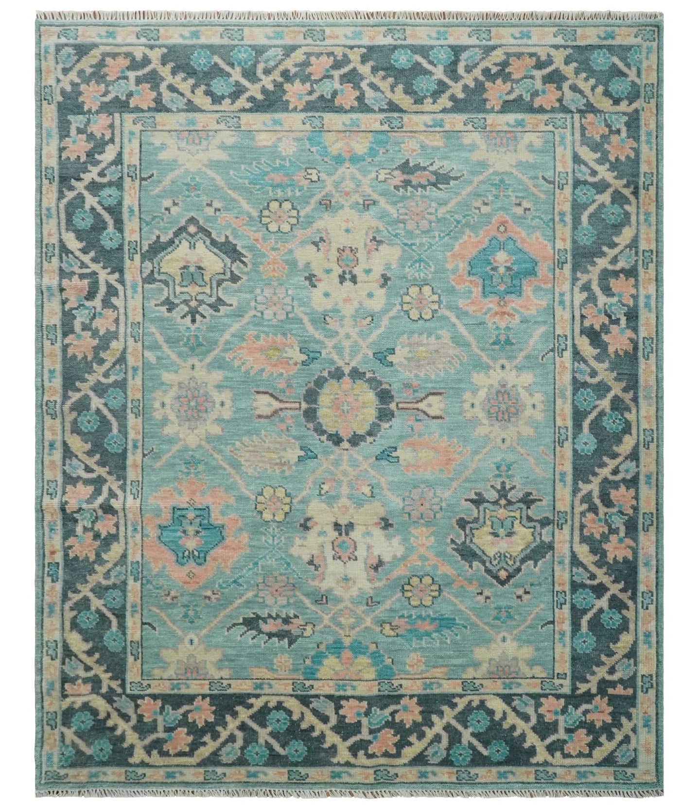 Dark Peach, Silver and Blue Traditional Mamluk Design Outdoor Safe Area Rug