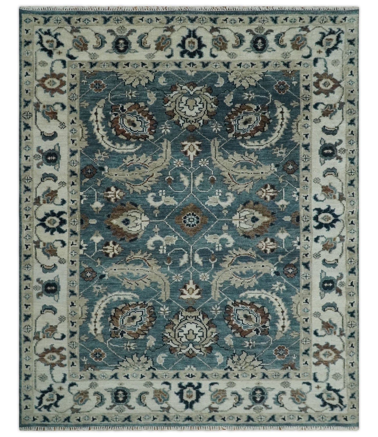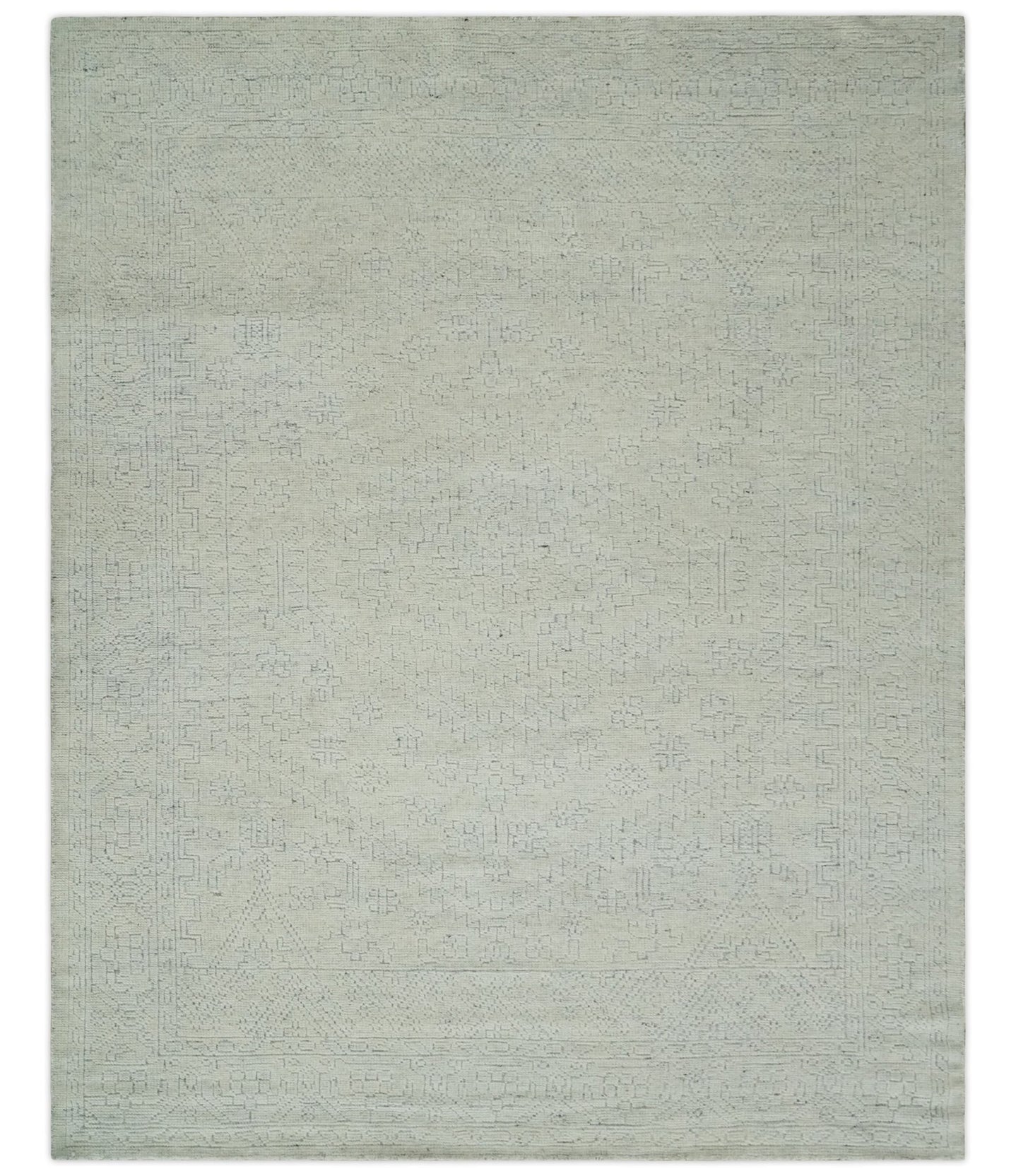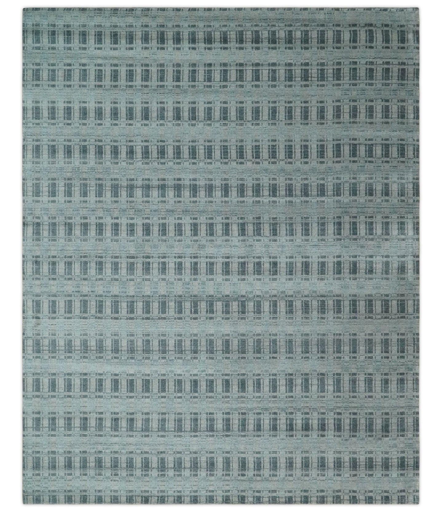 5x8 and 8x10 Hand Made Woolen Modern Blue and Ivory Area Rug | EVE001