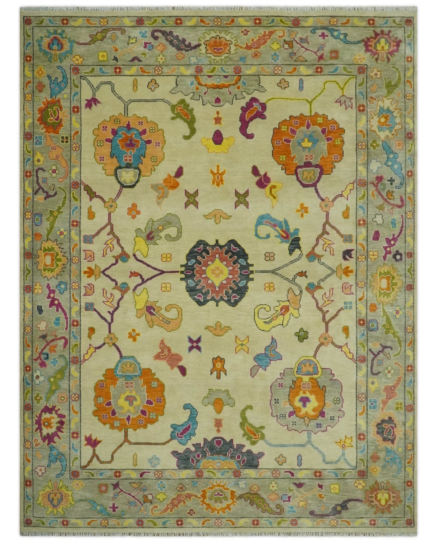 Vintage Style charcoal, Beige and Ivory Traditional oriental Oushak rug