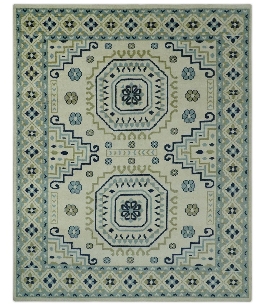 Custom Made Blue and Ivory Stripes Design Hand loom wool Area Rug - The Rug Decor