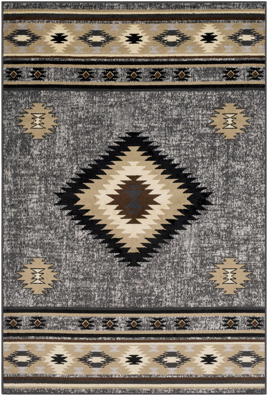 Tan, Black, Gray and silver Southwestern Multi Size Area Rug - The Rug Decor