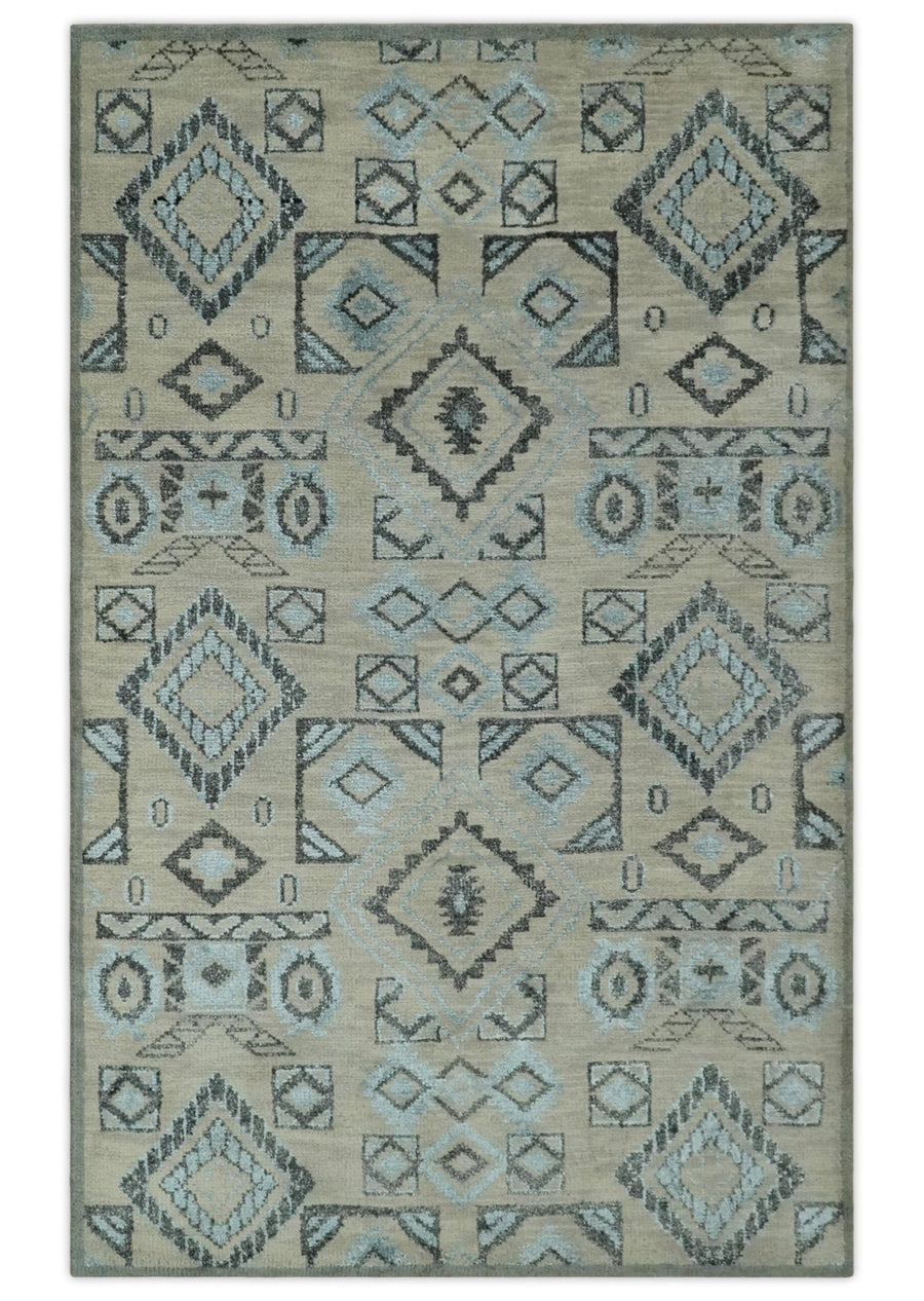 Tribal Design Green Custom Made Traditional Hand loom Wool Area Rug - The Rug Decor