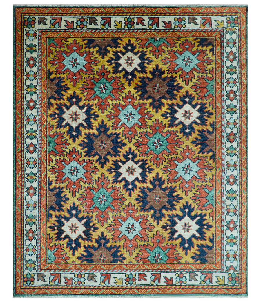 Custom Made Multicolor Vintage Geometric Design Hand Knotted Wool Rug
