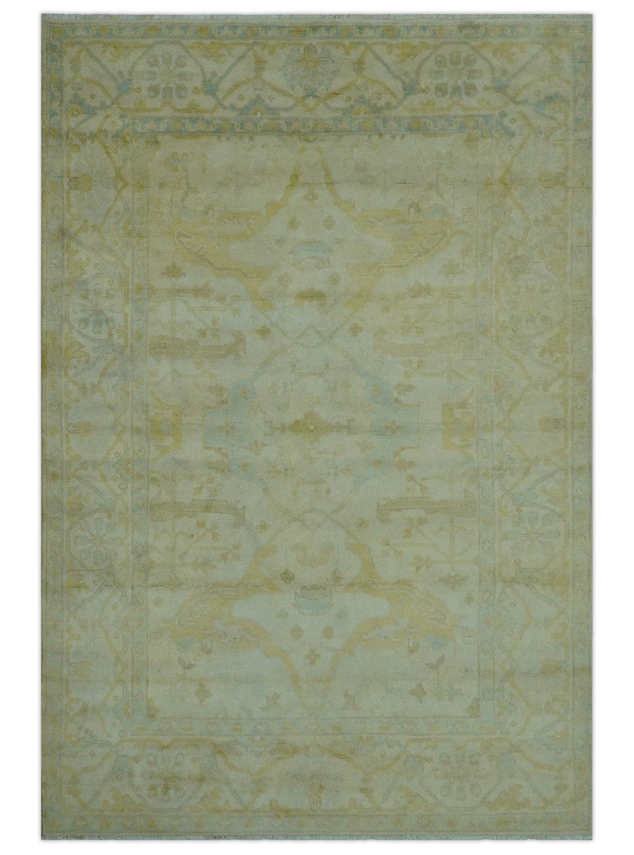 Teal And Yellow Modern Oushak Style Hand Knotted Custom Made Wool Rug