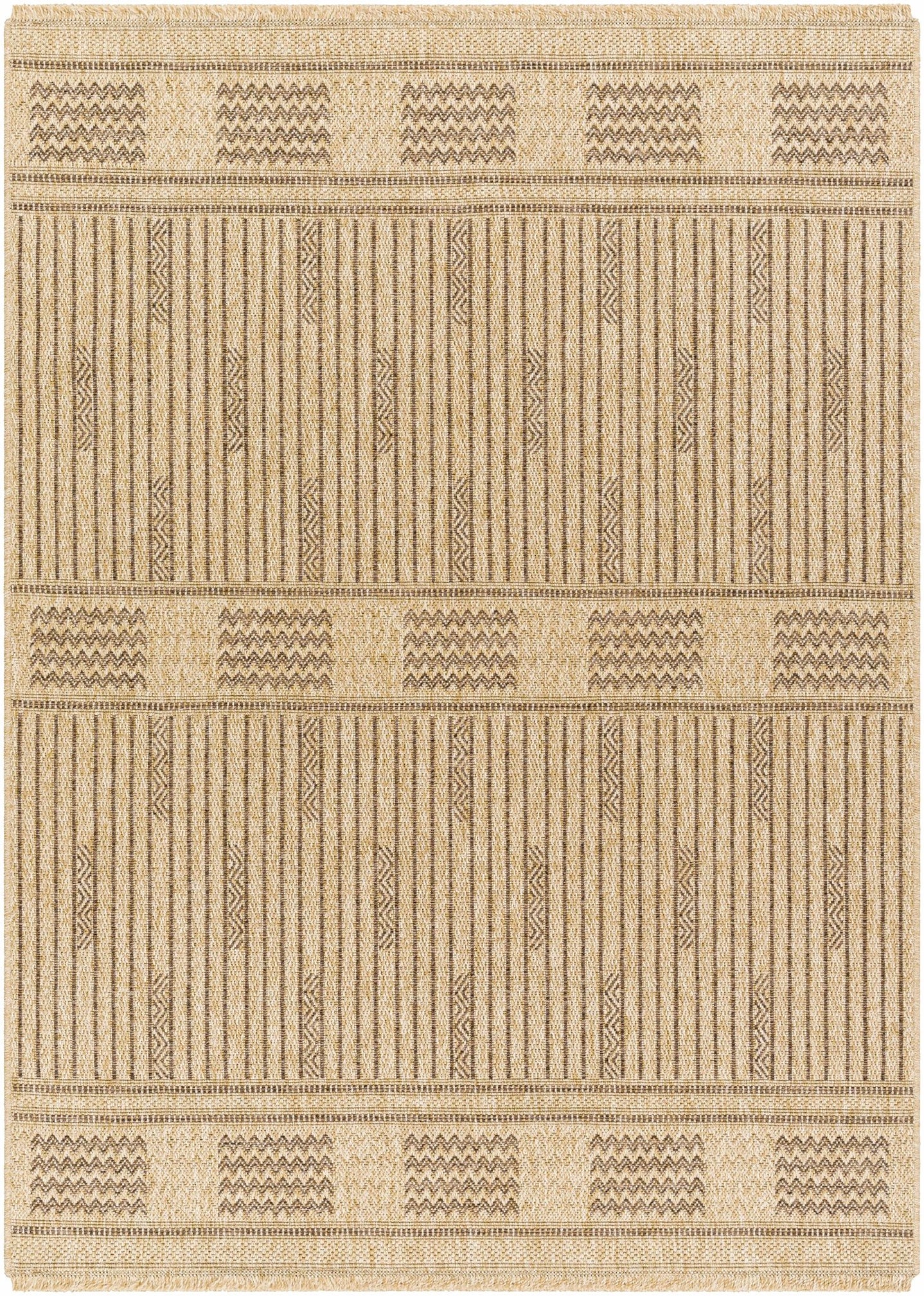 If you are confused about the colors to incorporate in your outdoor space, go for this minimalistic yet bold outdoor area rug featuring tribal designs in a neutral color combination of beige and brown.
