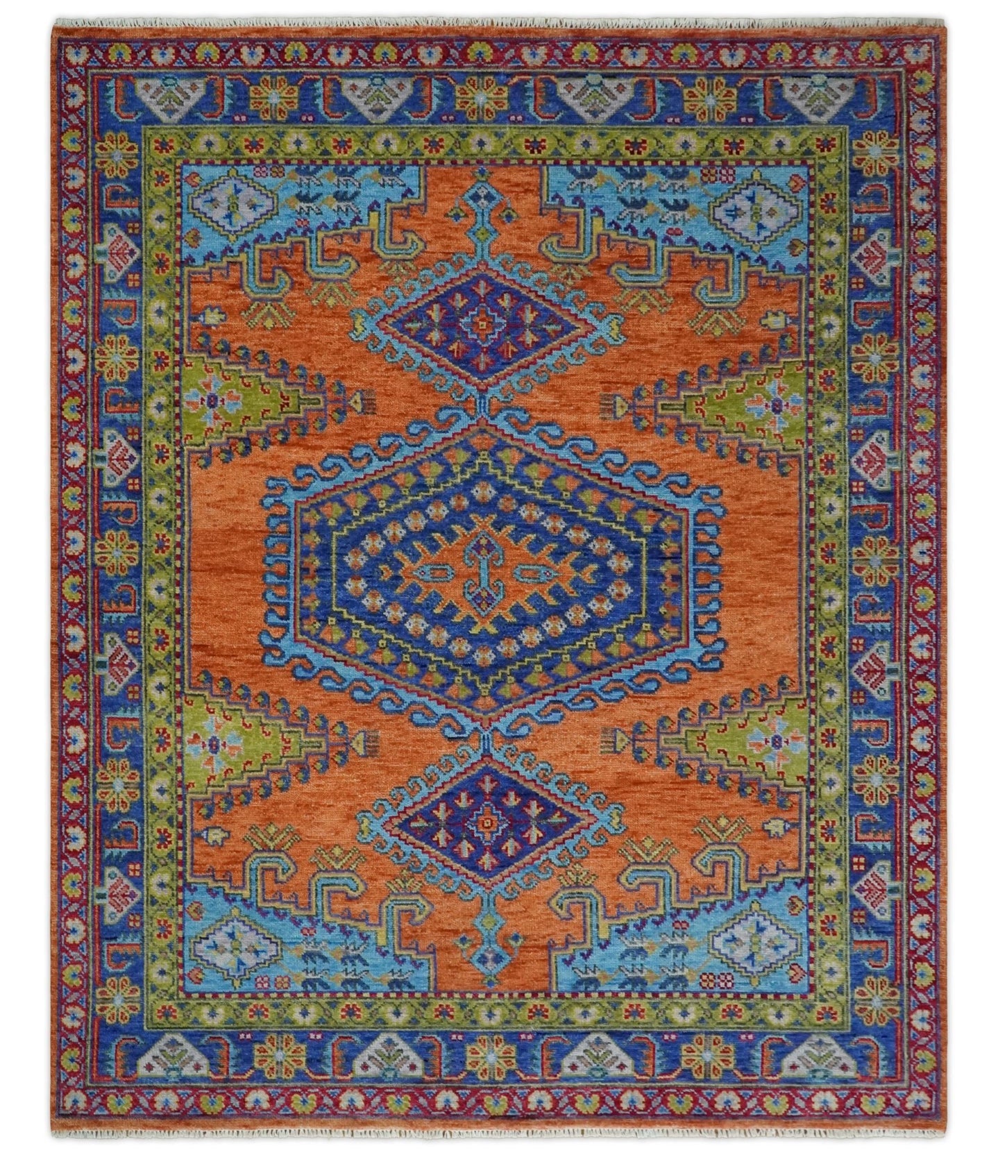 5x8 and 8x10 Hand Made Woolen Modern Camel and Blue Area Rug | EVE004