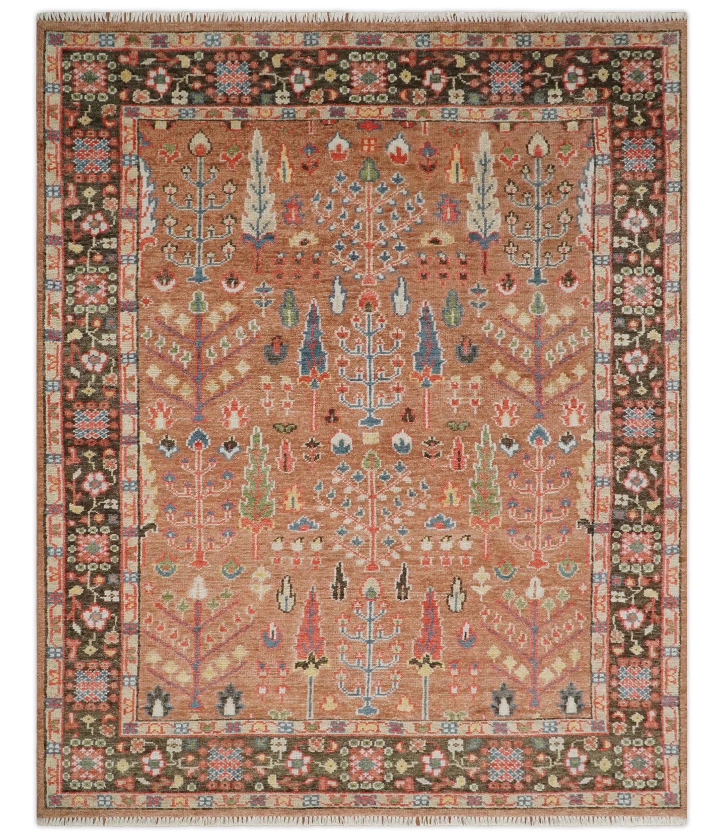 Traditional Oushak Tree of Life Rust and Brown Hand Knotted Wool Rug