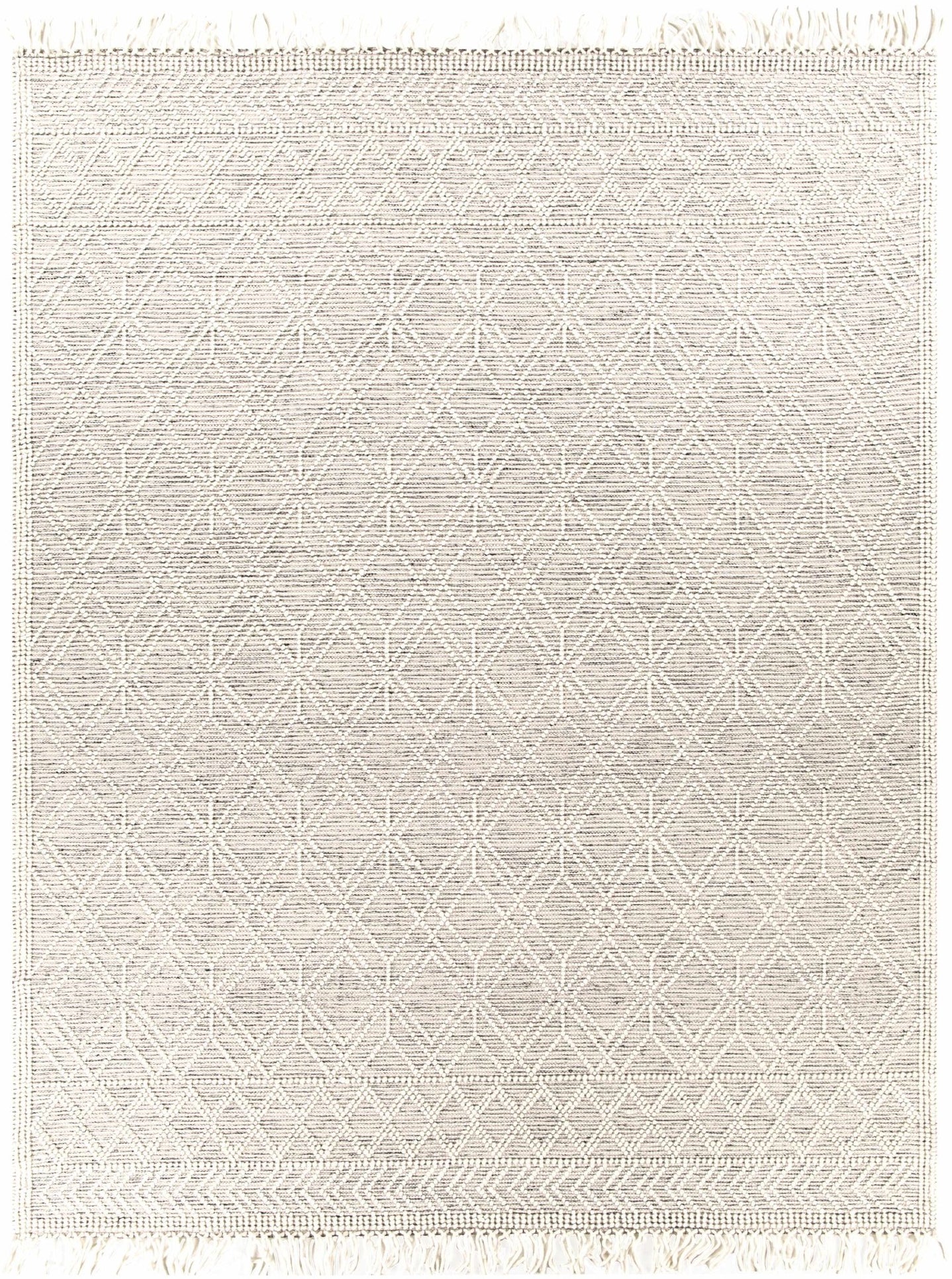 Transitional Hand Woven Ivory and Beige Tasseled Texture Wool Cotton Blended Rug