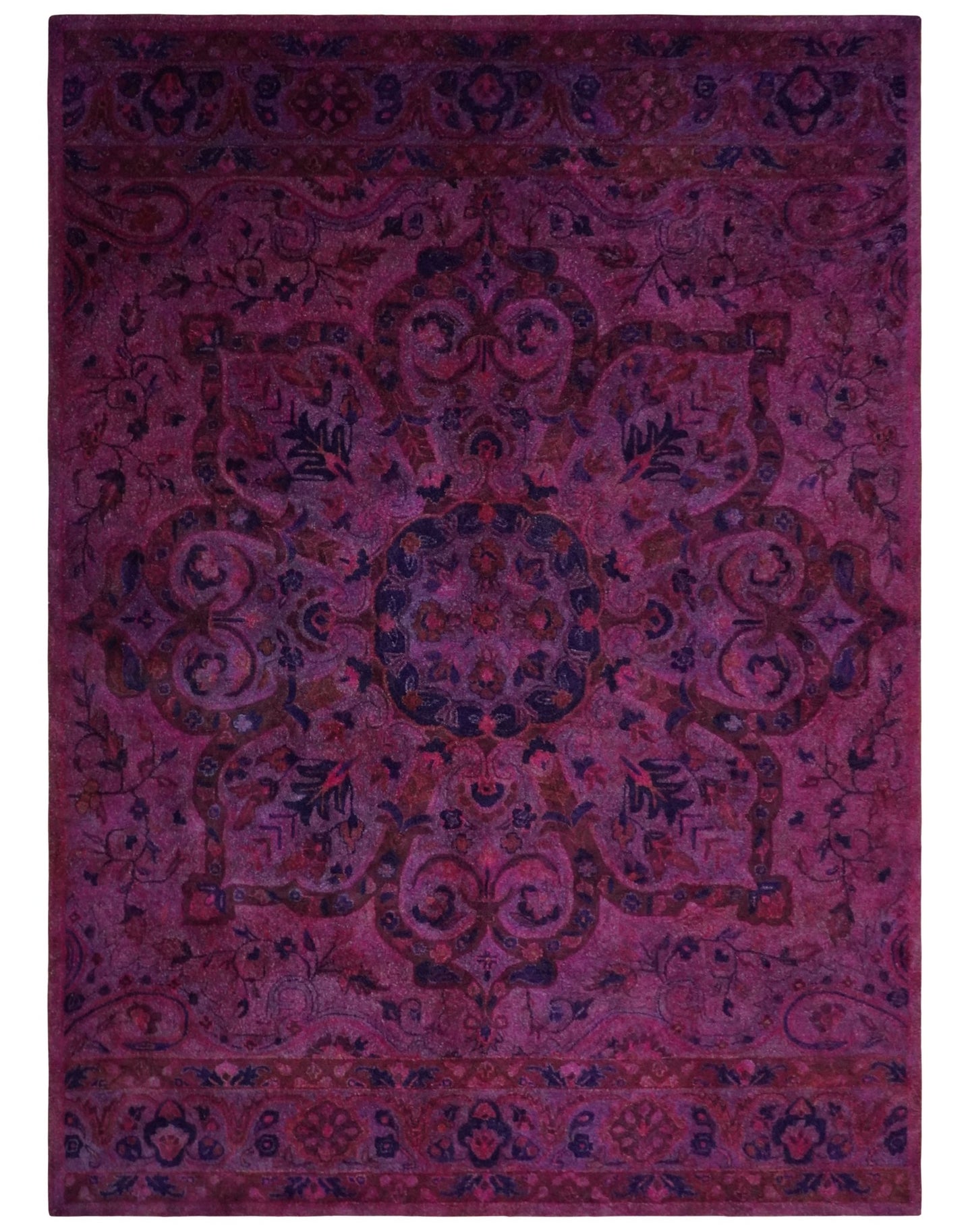 Overdyed Pink Traditional Floral Design Hand Tufted Wool Area Rug