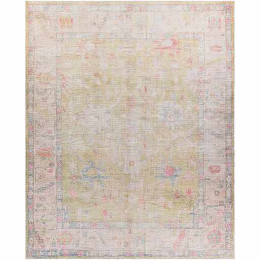 Antique Distressed Finished Mustard and Light Pink Oushak Design Washable Rug