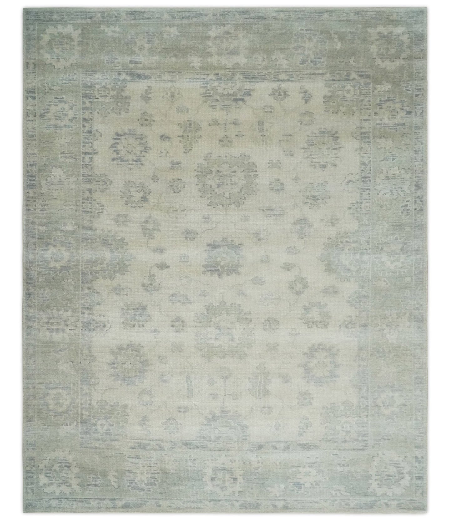 Hand Knotted Custom Made Olive, Silver and Beige Traditional Wool Rug