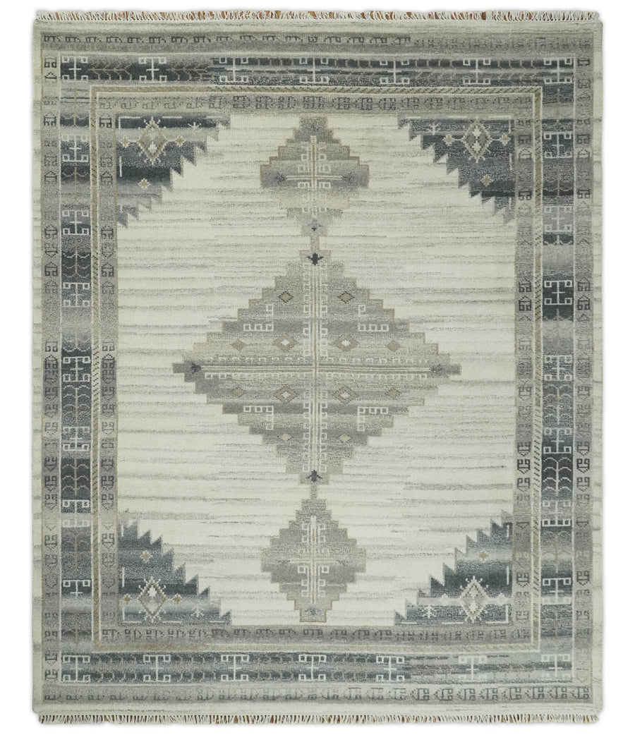 Hand Knotted Gray and Ivory Persian Turkish Oushak Wool Rug, 6x9, 8x10, 9x12, 10x14 and 12x15 | TRDCP1043 - The Rug Decor