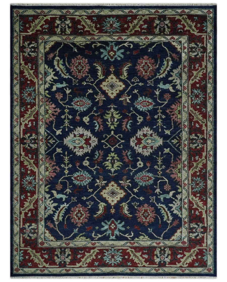 Ready to Ship Hand Knotted Blue and Rust Modern Oushak Area Rug - The Rug Decor