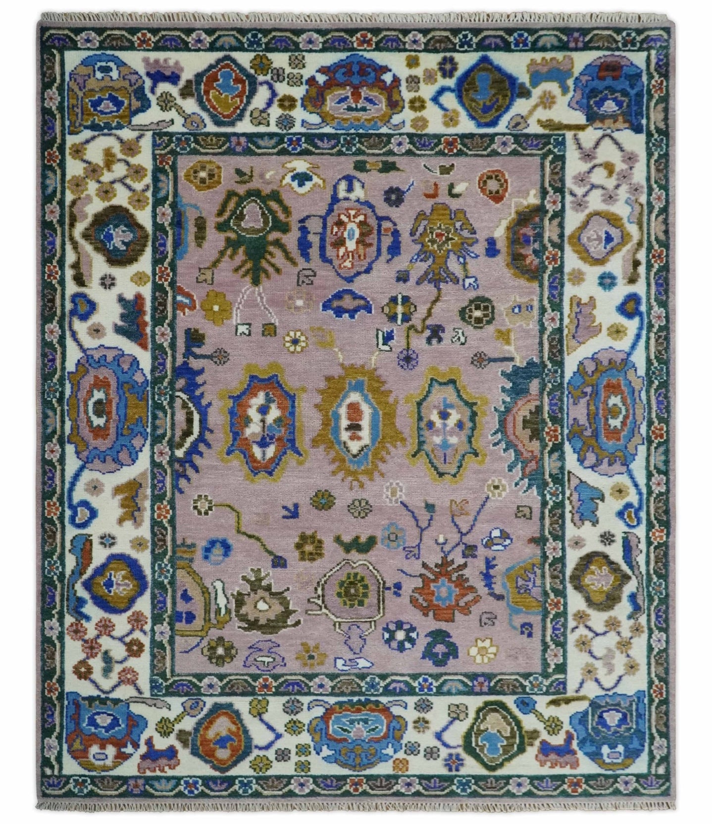 Green and Ivory Hand knotted Oriental Oushak Multi Size wool Area Rug