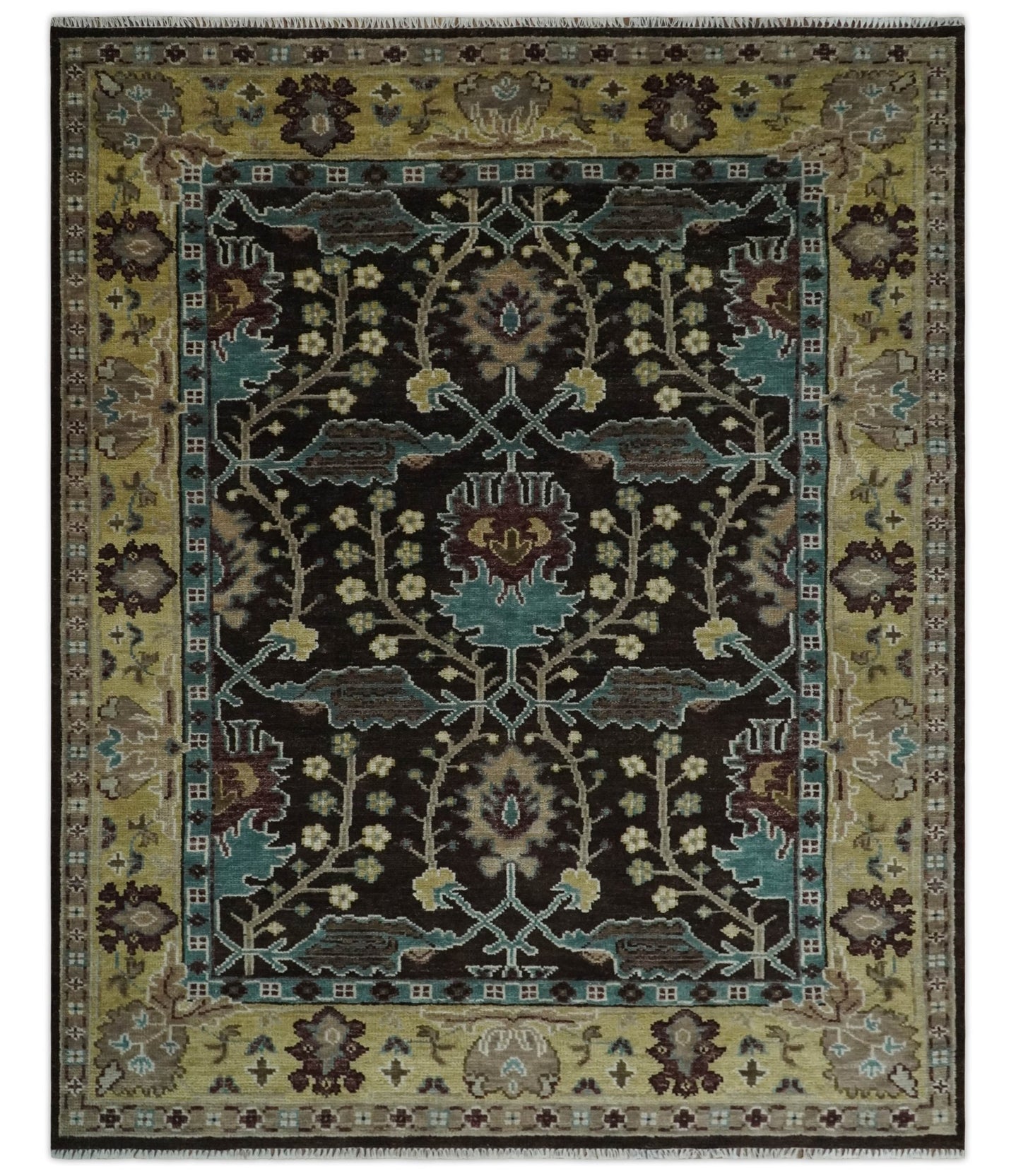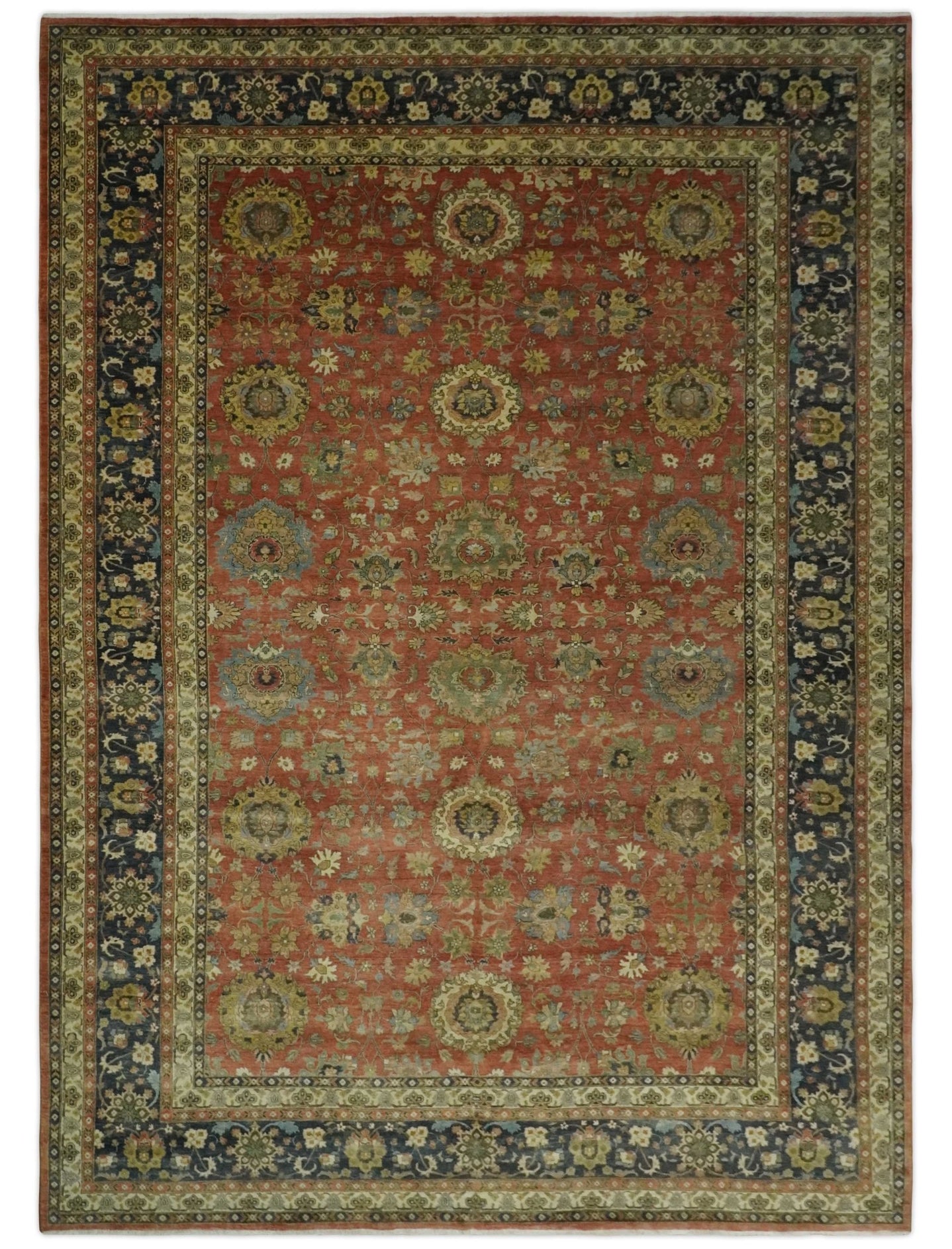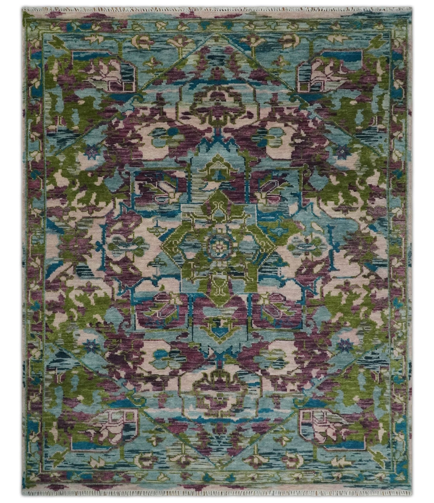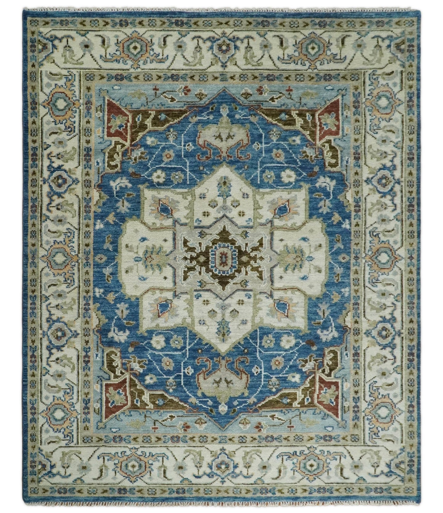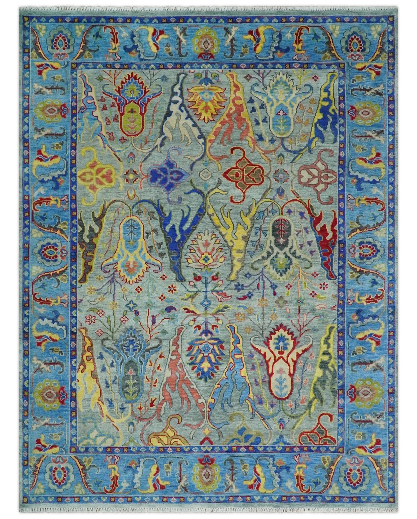 Blue, Rust and Aqua Hand Knotted Floral Multi Size Oushak Wool Area Rug