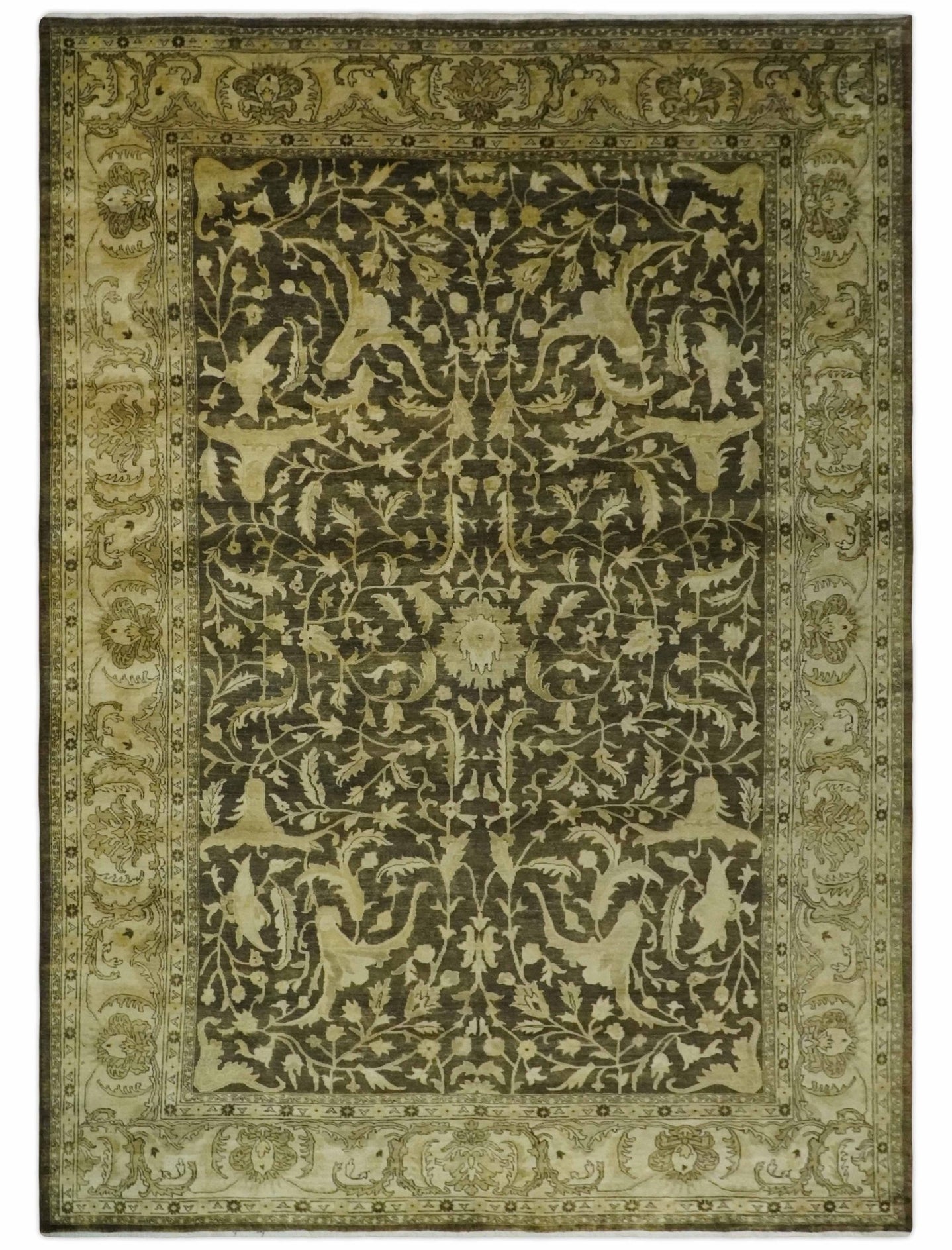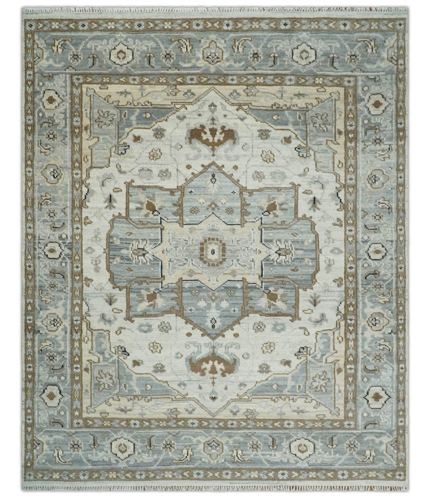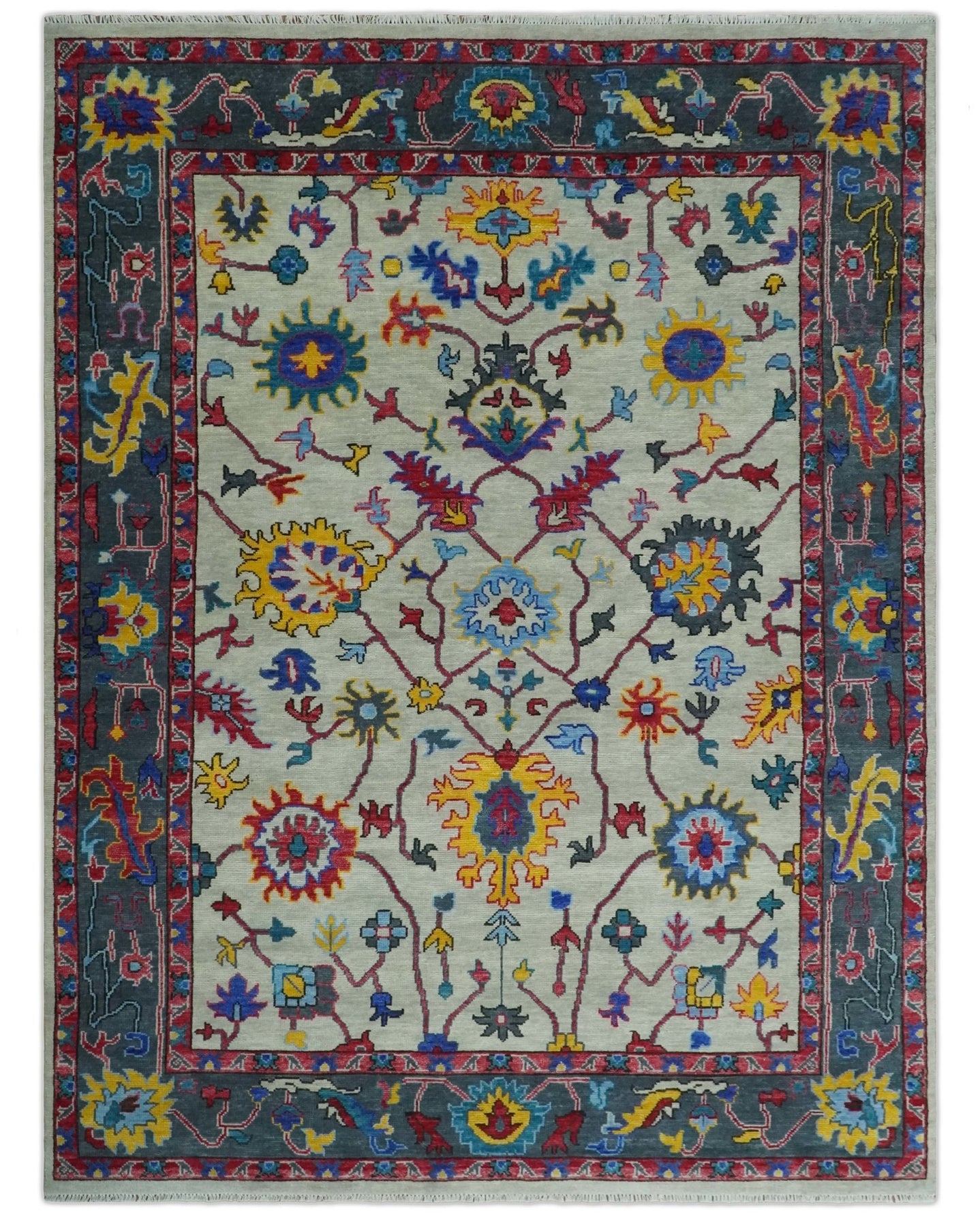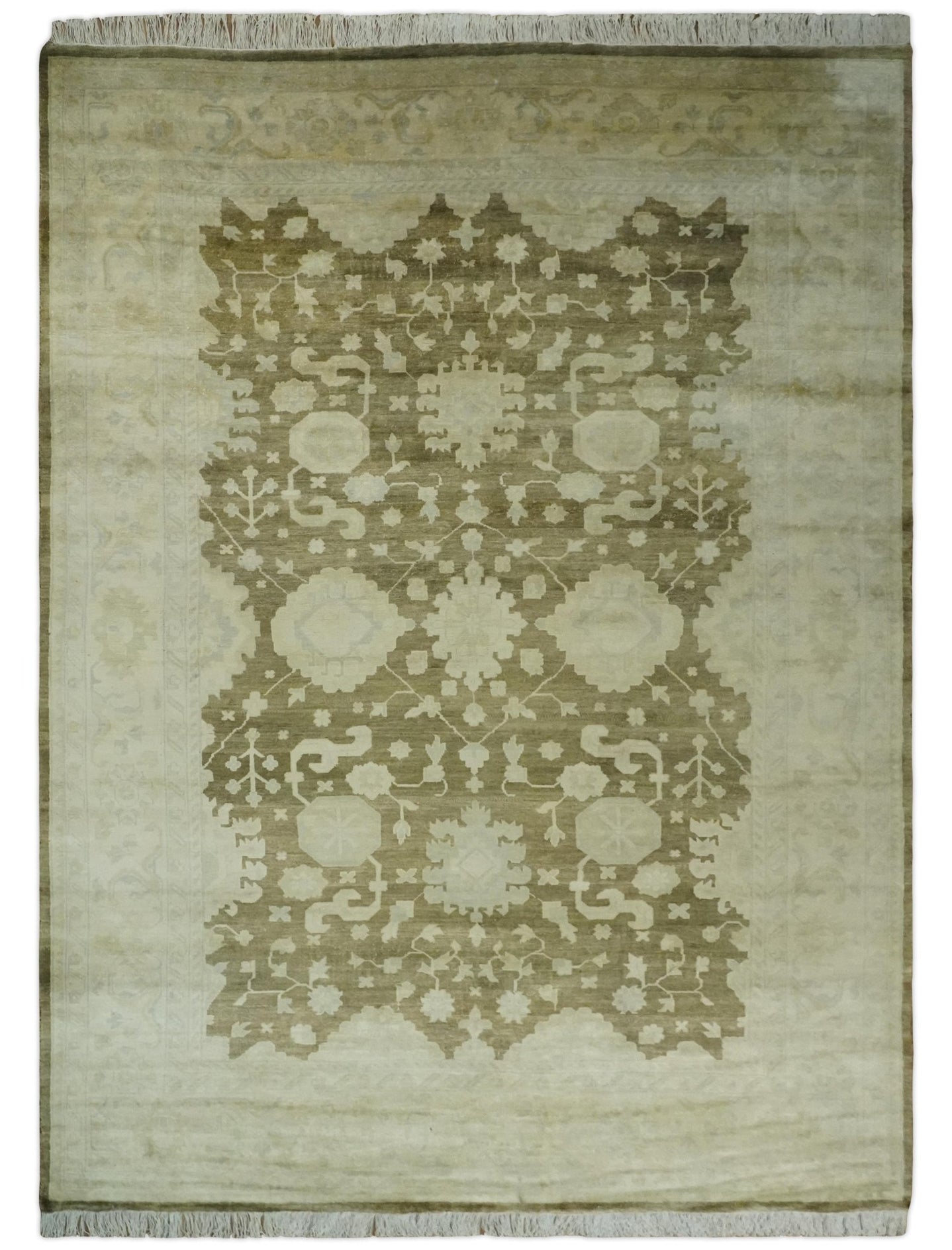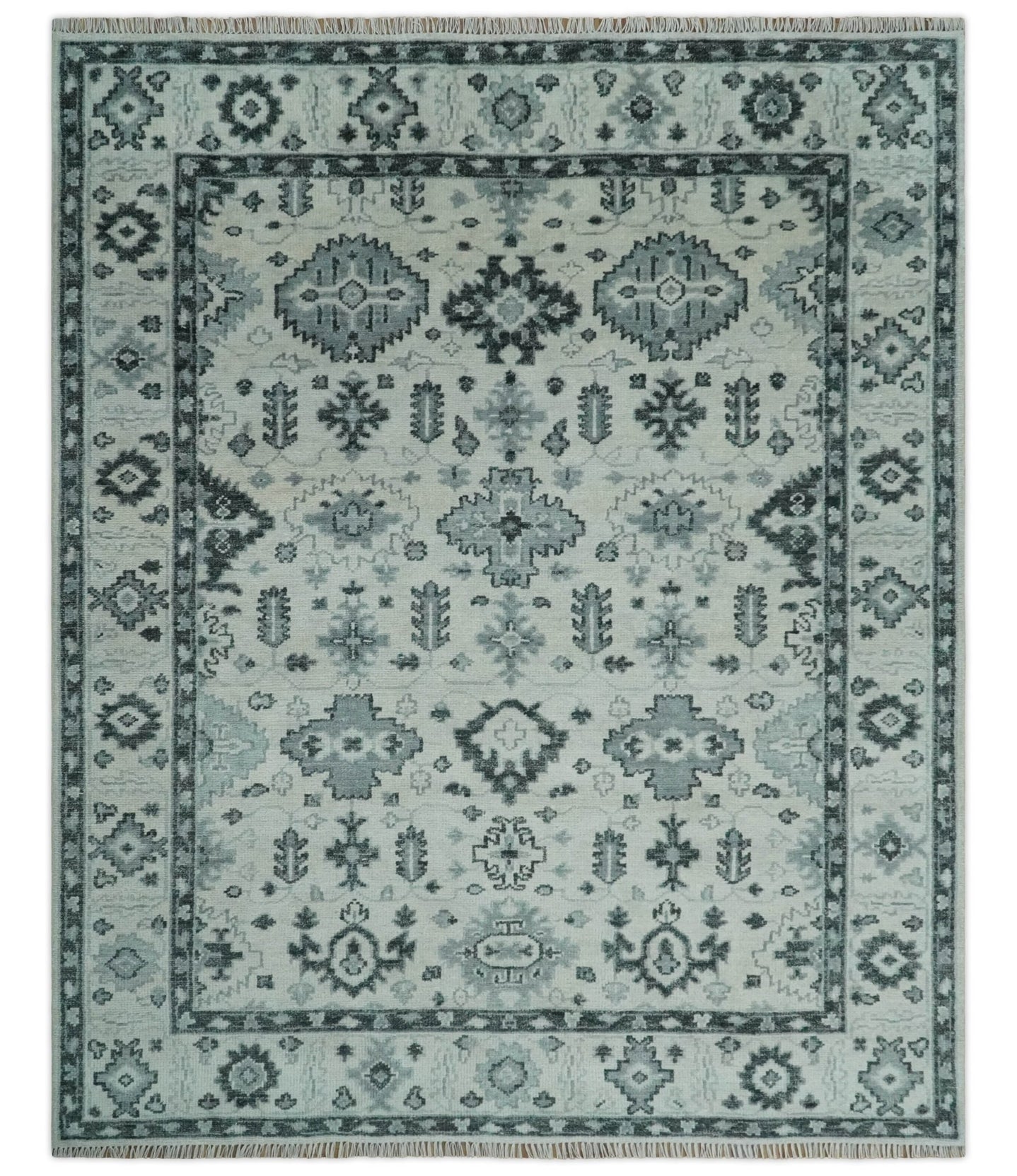 Hand Knotted Oriental Oushak Ivory, Charcoal and Beige Wool Area Rug