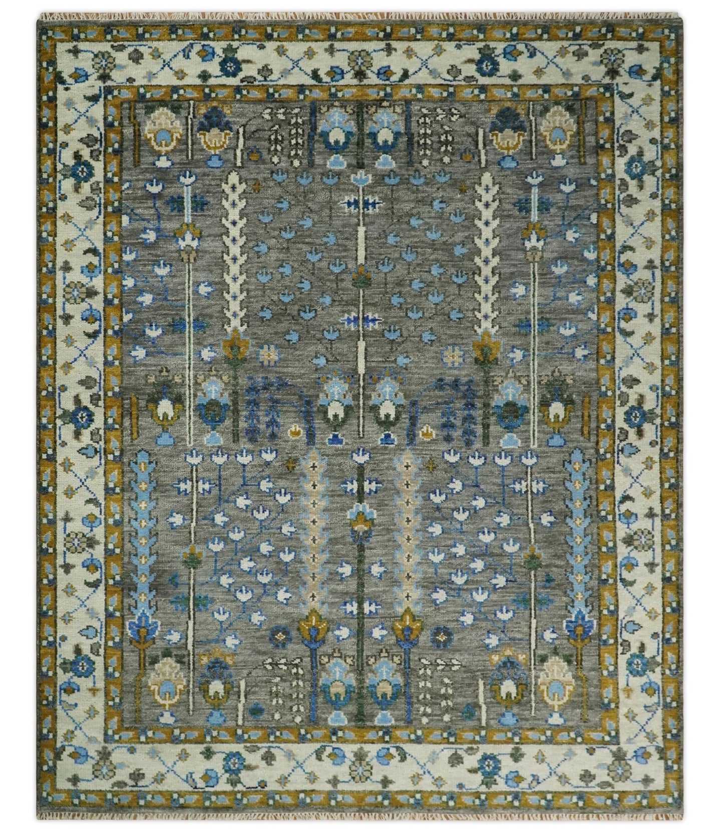 Custom Made Silver and Gray Oushak Hand Knotted Traditional Wool Rug