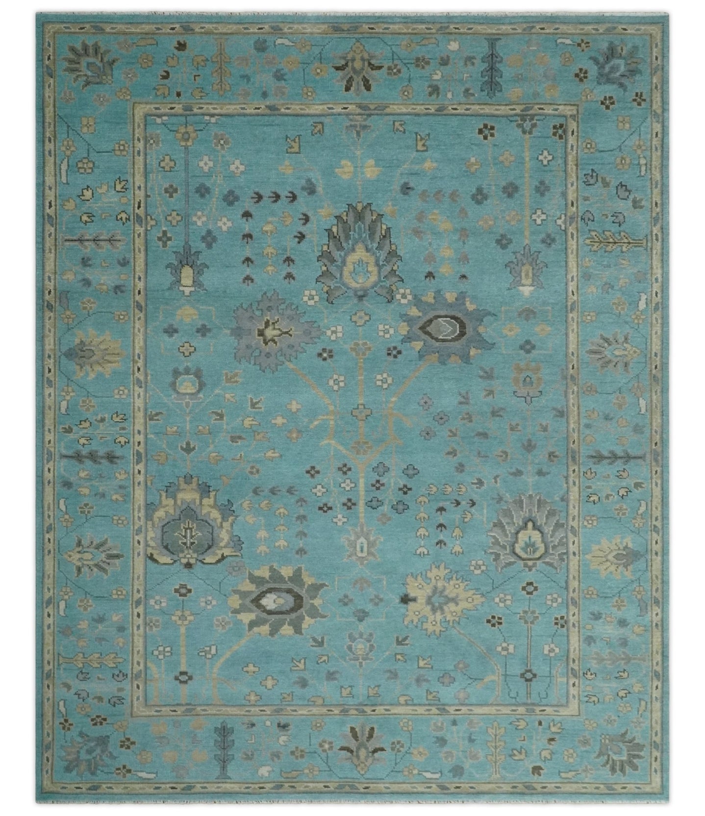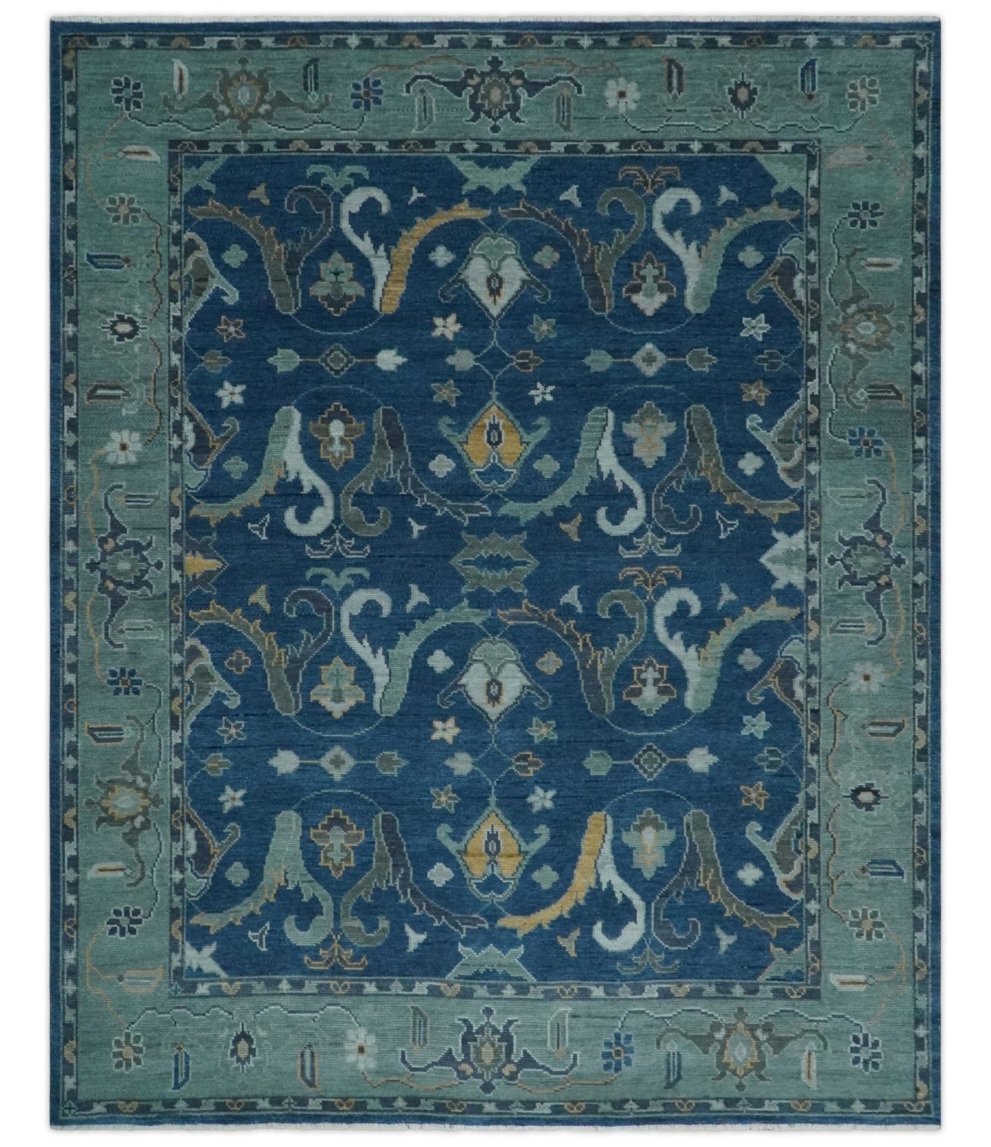 Hand Knotted Blue and Beige Persian Oushak Wool Rug