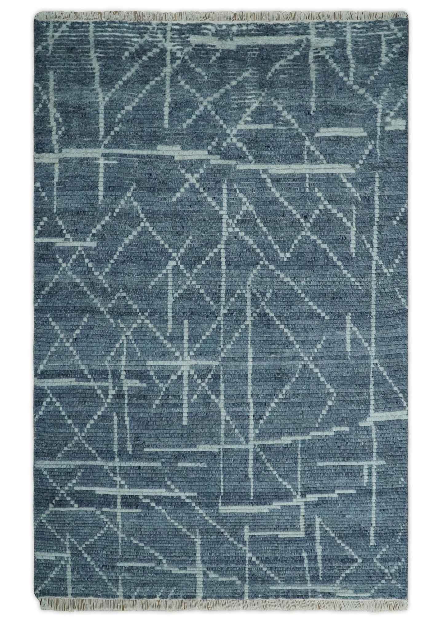 Custom Made Solid Modern Blue Hand Tufted thick Wool Area Rug