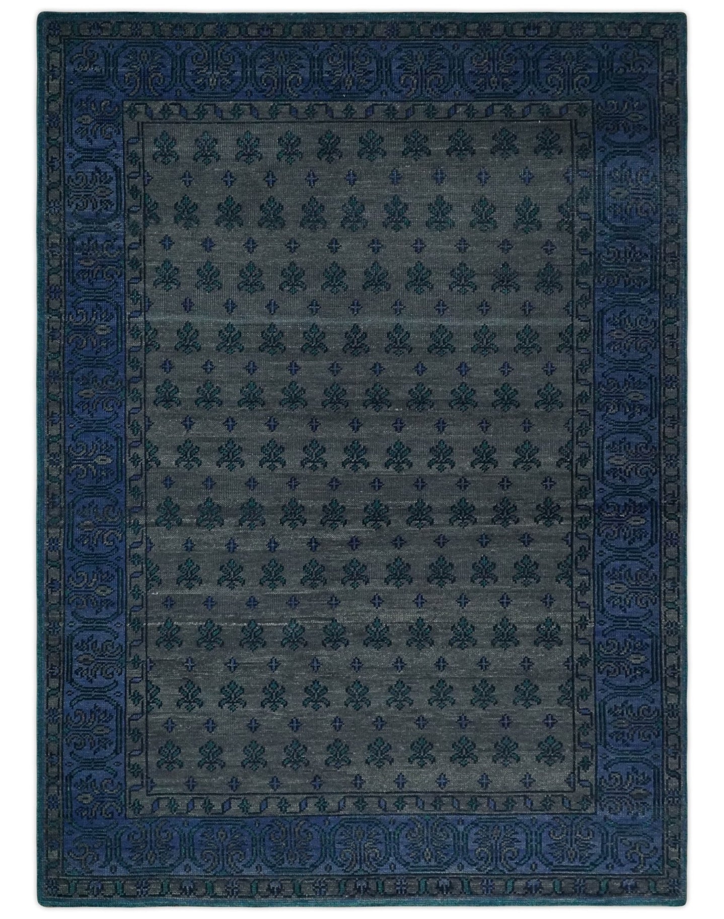 Hand Tufted Traditional Design Blue Overdyed Wool Area Rug