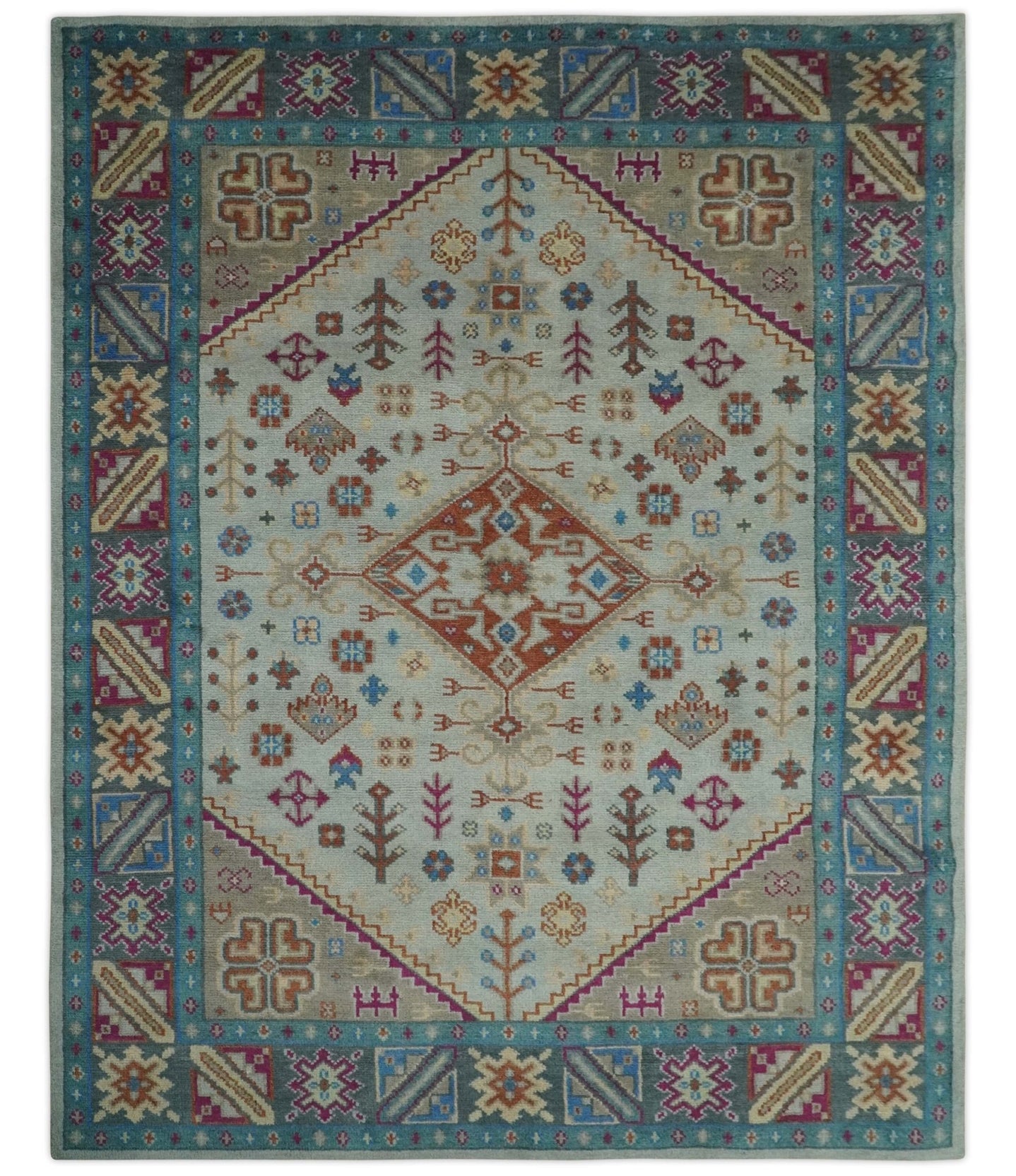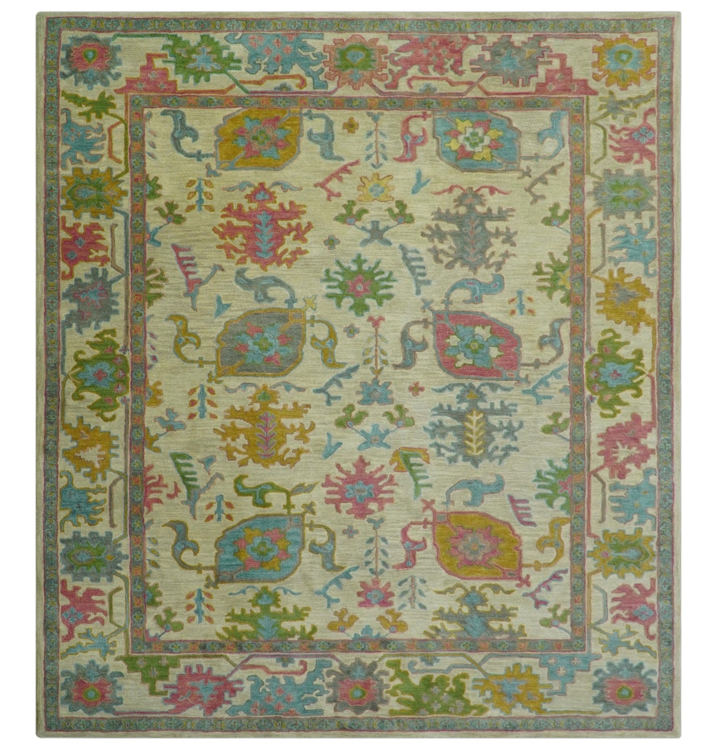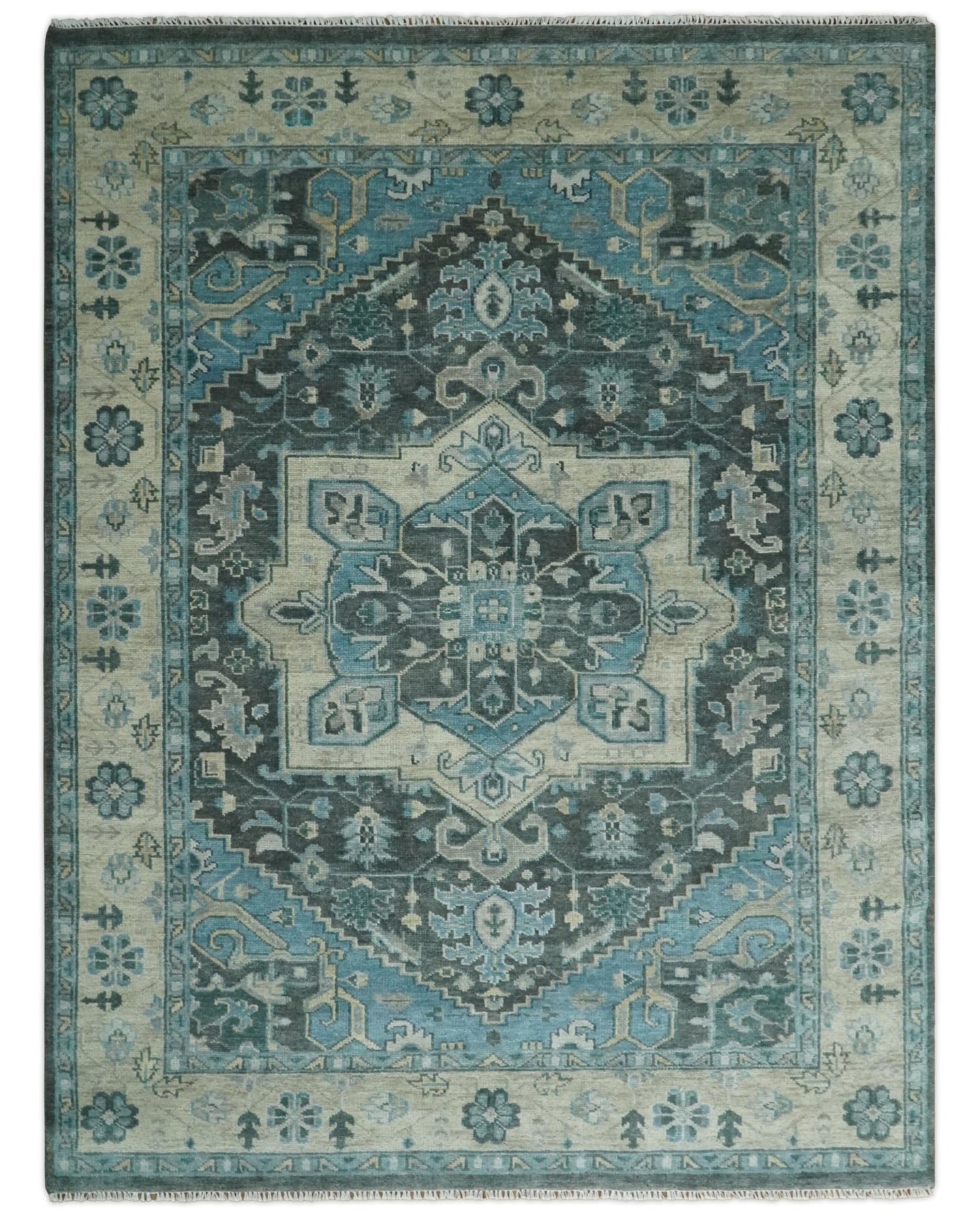 Custom Made Traditional Floral Green and Blue Hand Knotted wool area rug