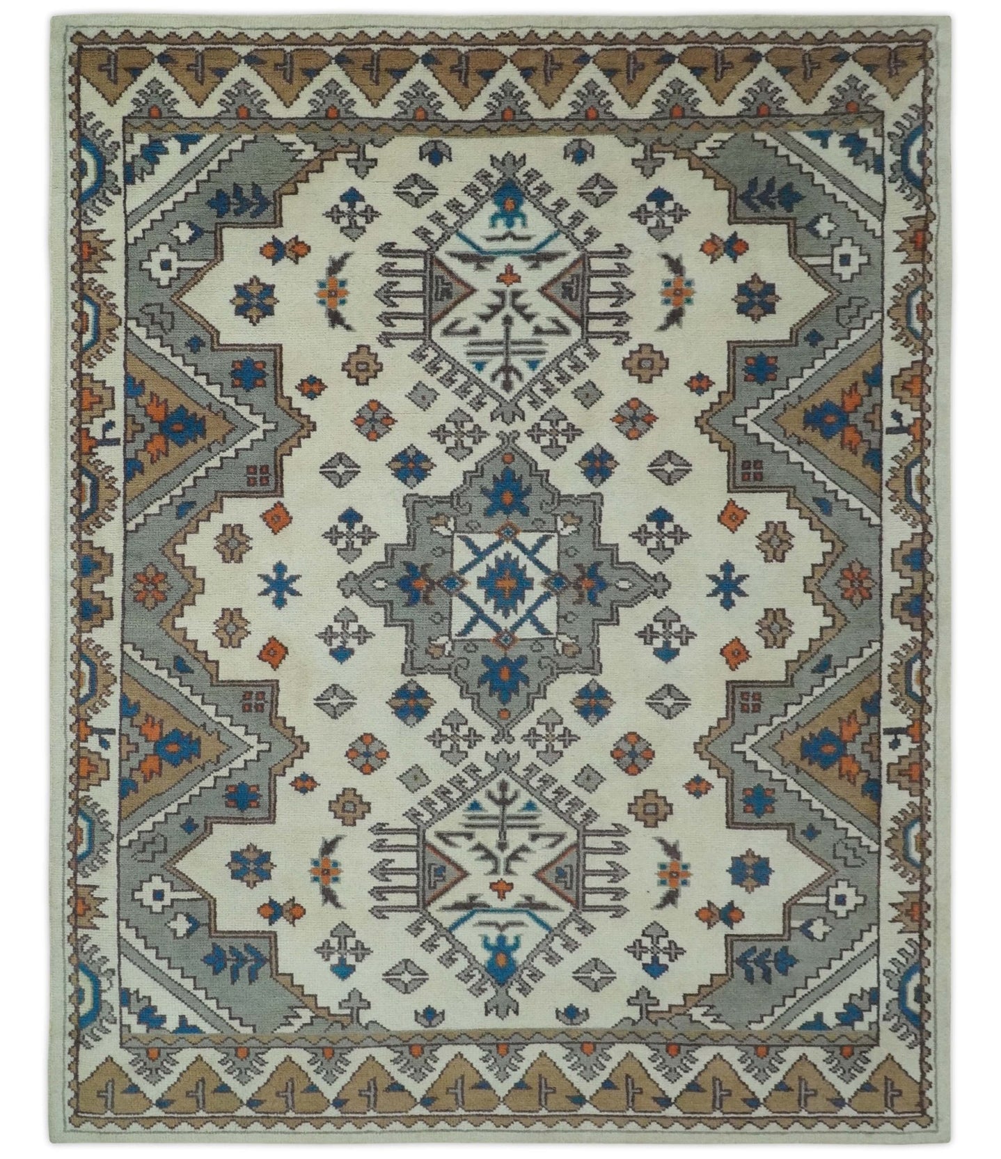 Custom Made Ivory, Gray and Camel Traditional Hand knotted Wool Area Rug