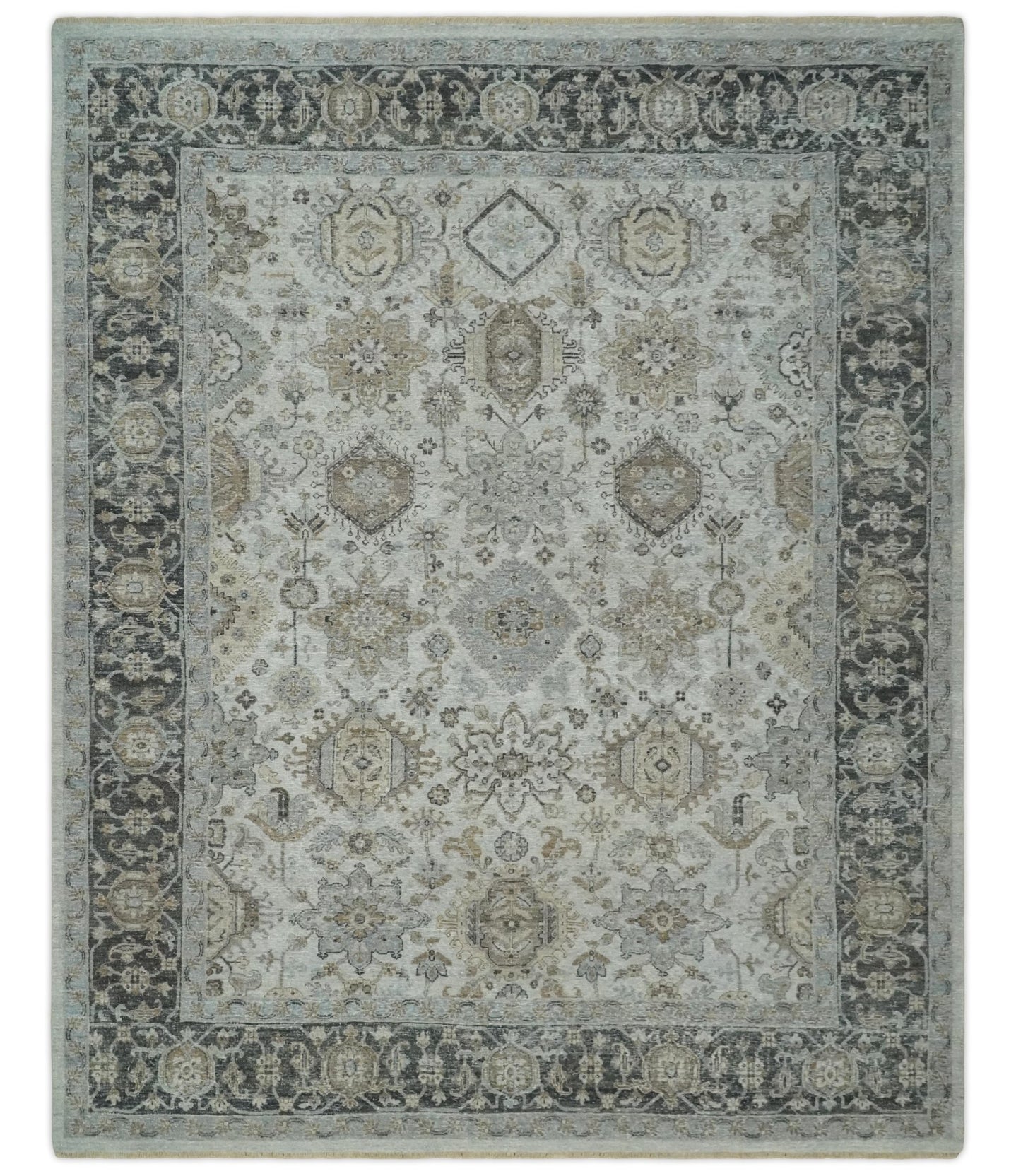 Custom Made Hand Knotted Black and Rust Traditional Oushak Wool Area Rug