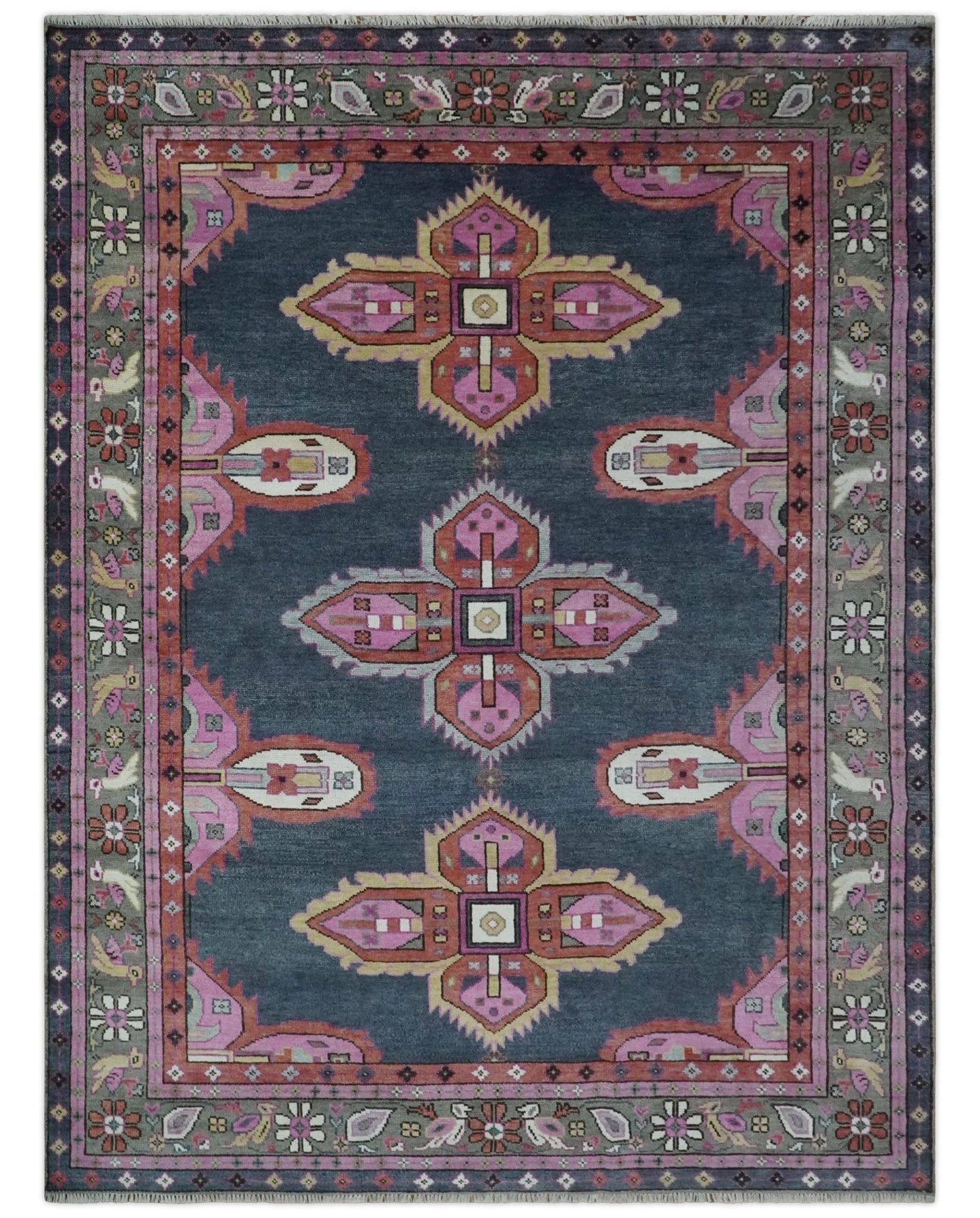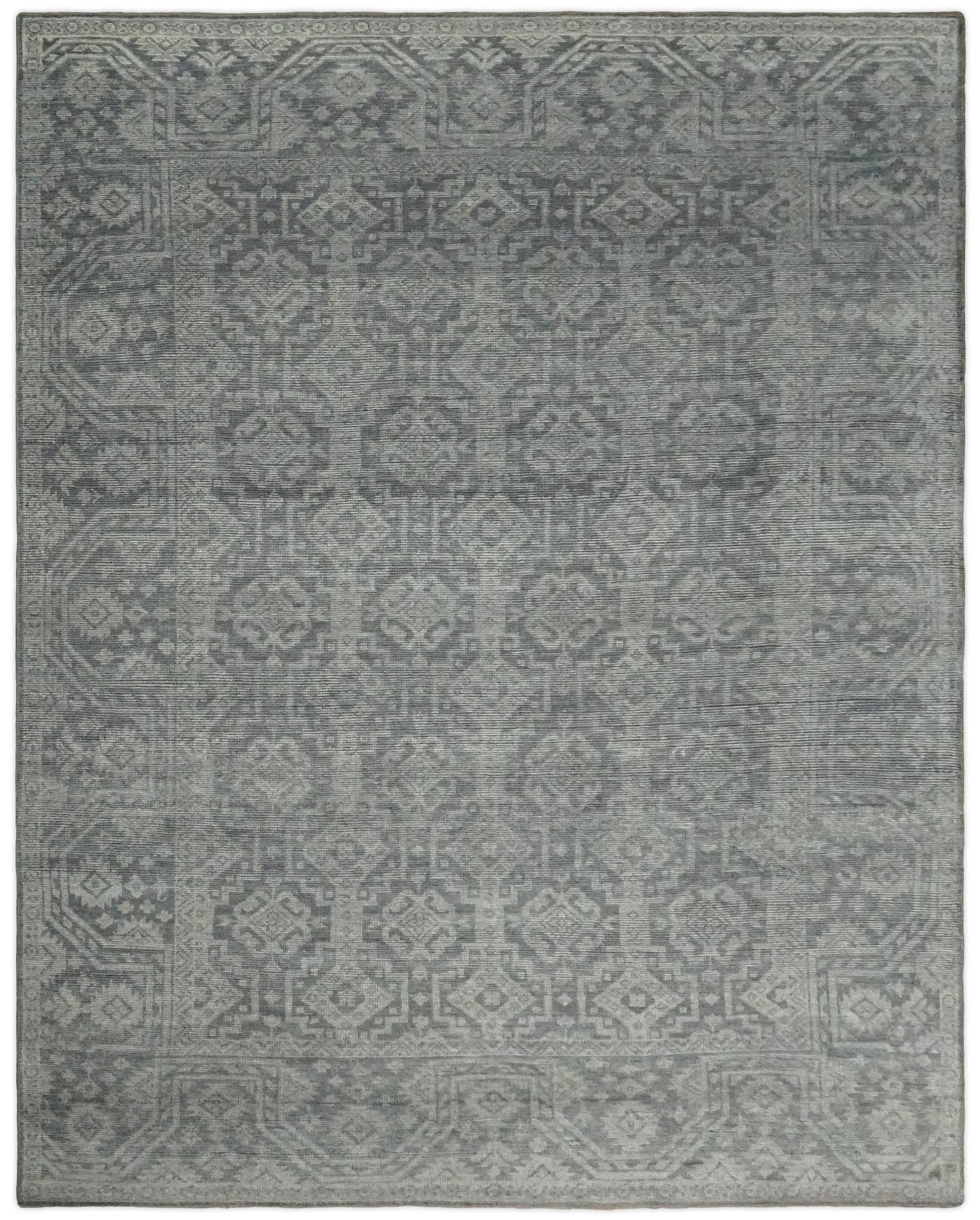 Custom Made Hand Knotted Dark Peach and Silver Traditional Wool Rug