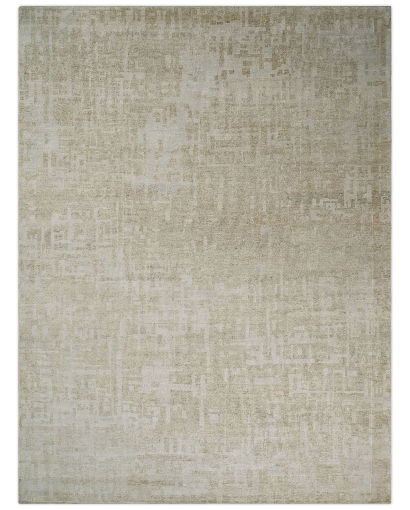 8x10, 9x12 and 10x14 Hand Knotted Ivory and Beige Modern Abstract Contemporary Recycled Silk Area Rug | OP14
