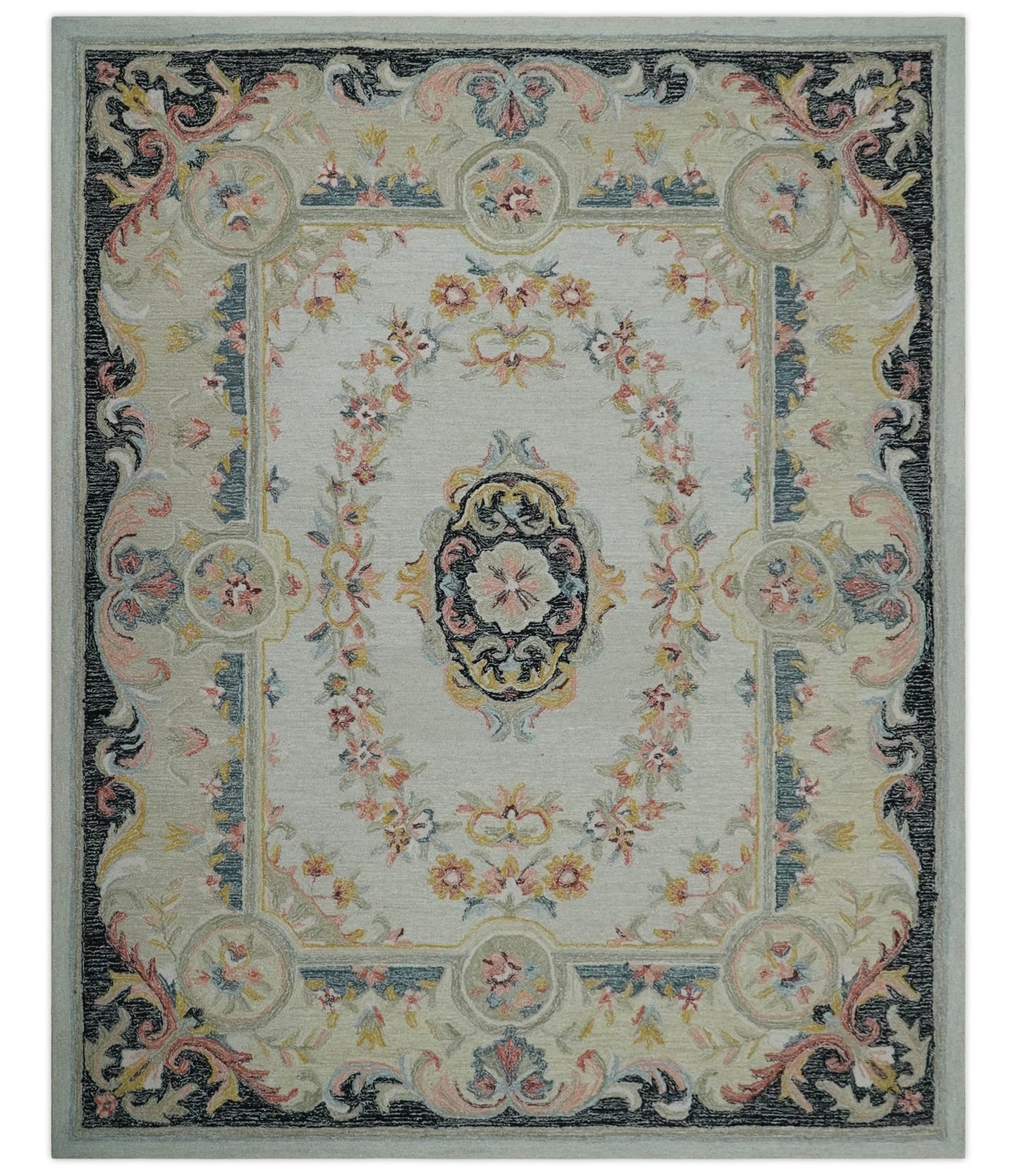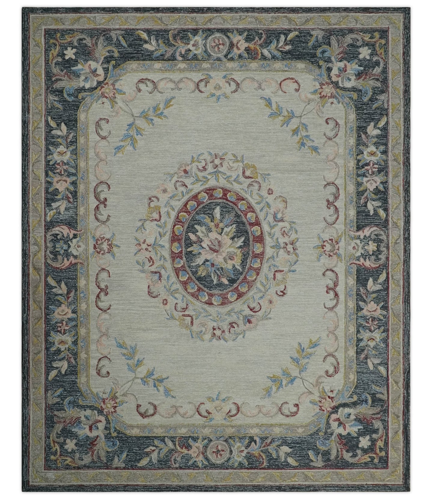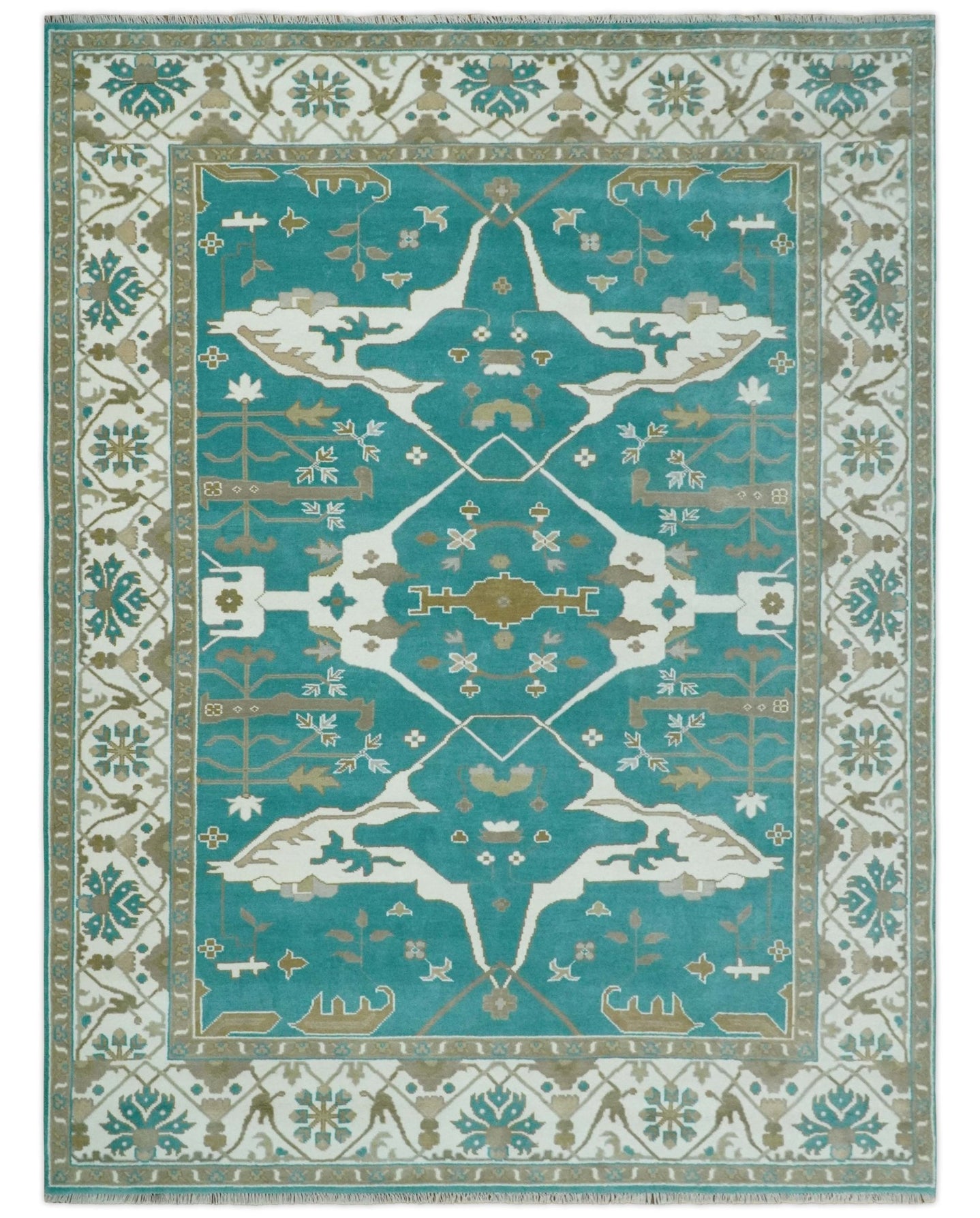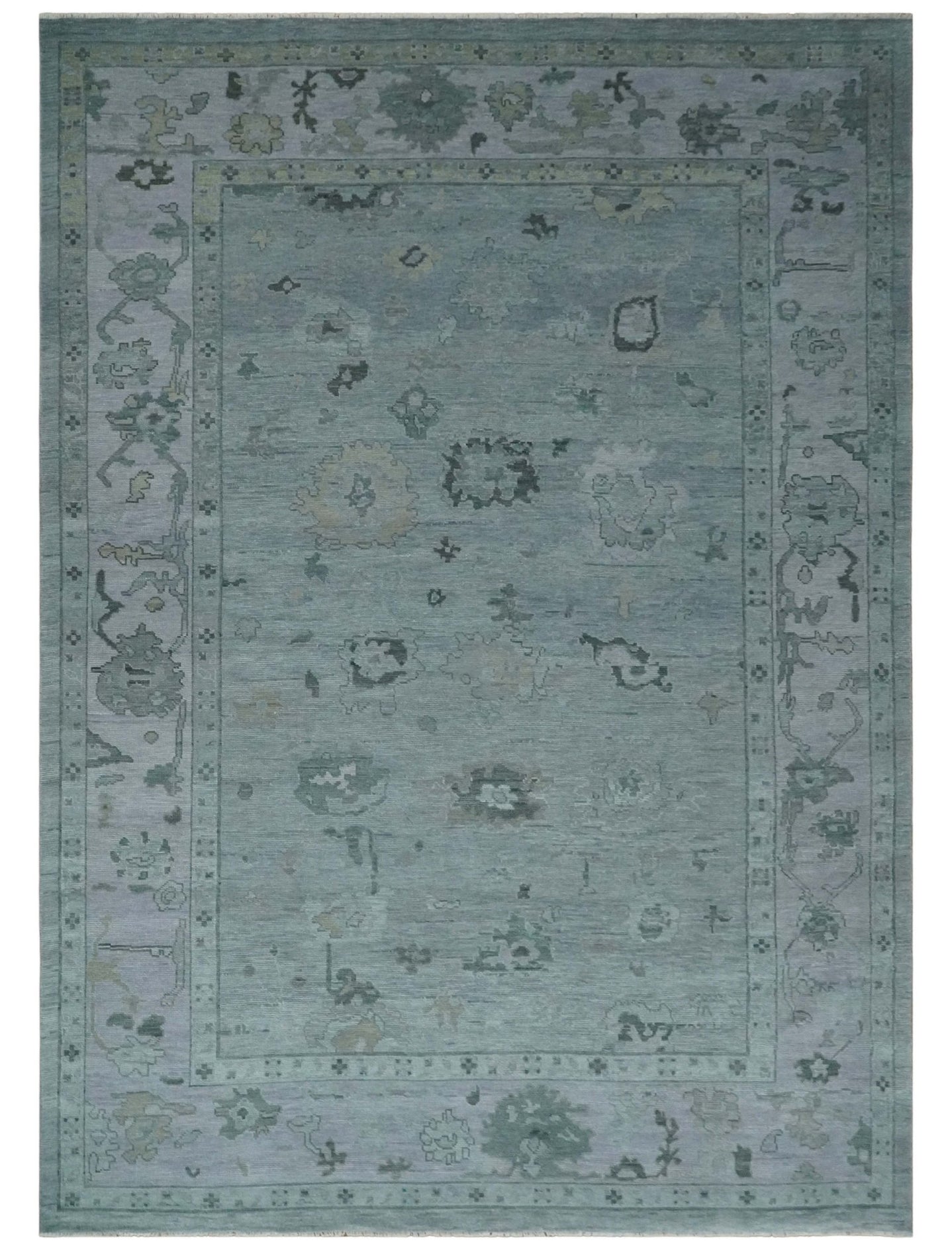 Custom Made Tufted Beige and Blue Traditional Wool Oushak Rug