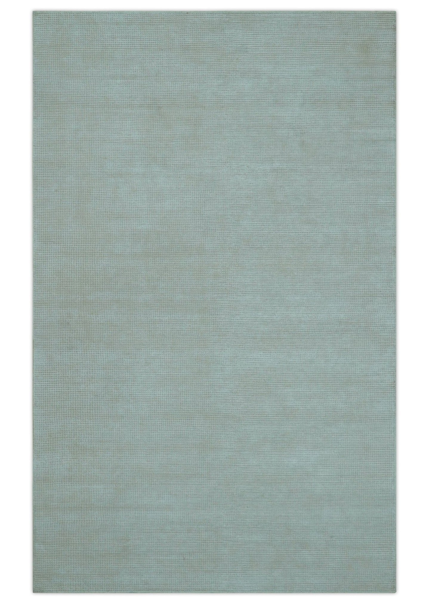 Transitional Design Green And Blue Hand Knotted Custom Made Wool Rug