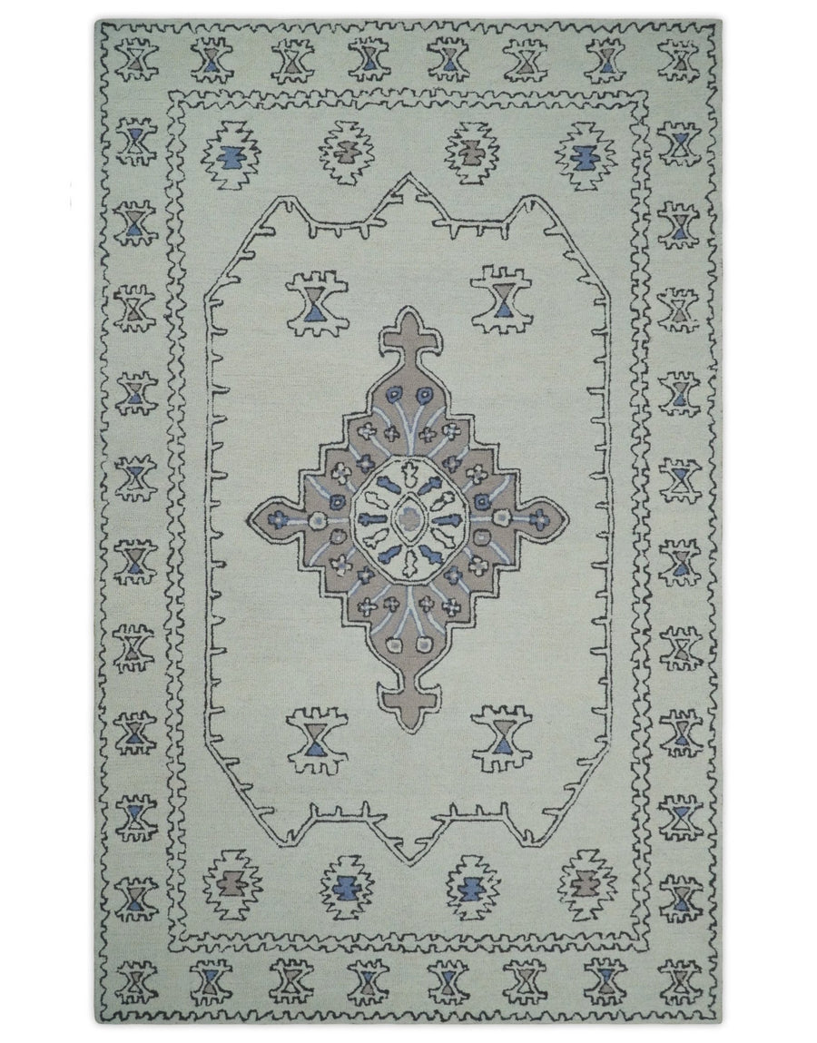 Custom Made Hand Tufted Solid Shaded Brown, Beige and Gray Area Rug