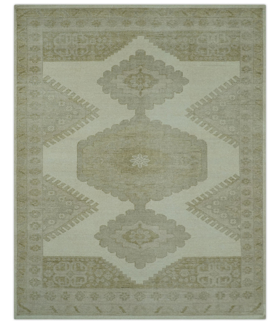 Custom Made Beige And Gray Traditional Hand Knotted wool area rug - The Rug Decor