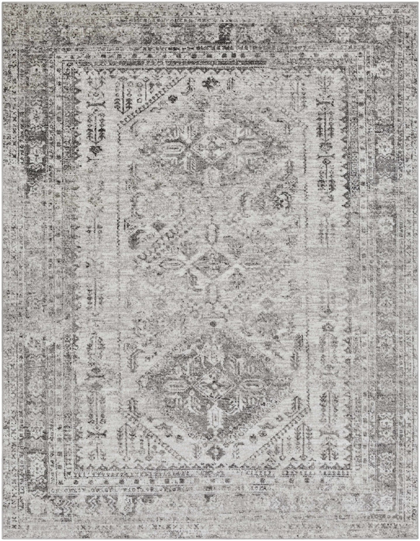 Antique Style Ivory, Tan, Charcoal and Gray Transitional Design Area Rug
