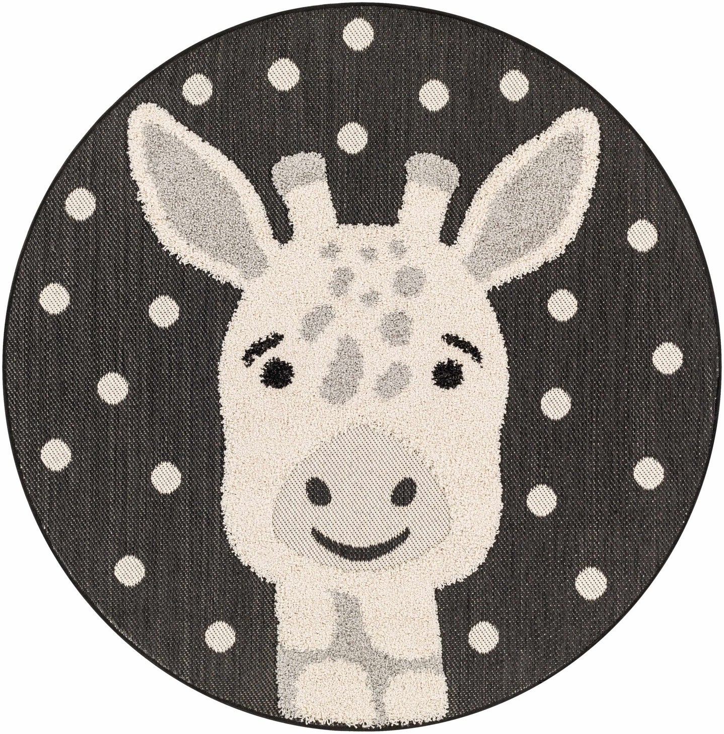 Beige, Black and Gray Kids Giraffe high low Texture Round Outdoor safe Area Rug
