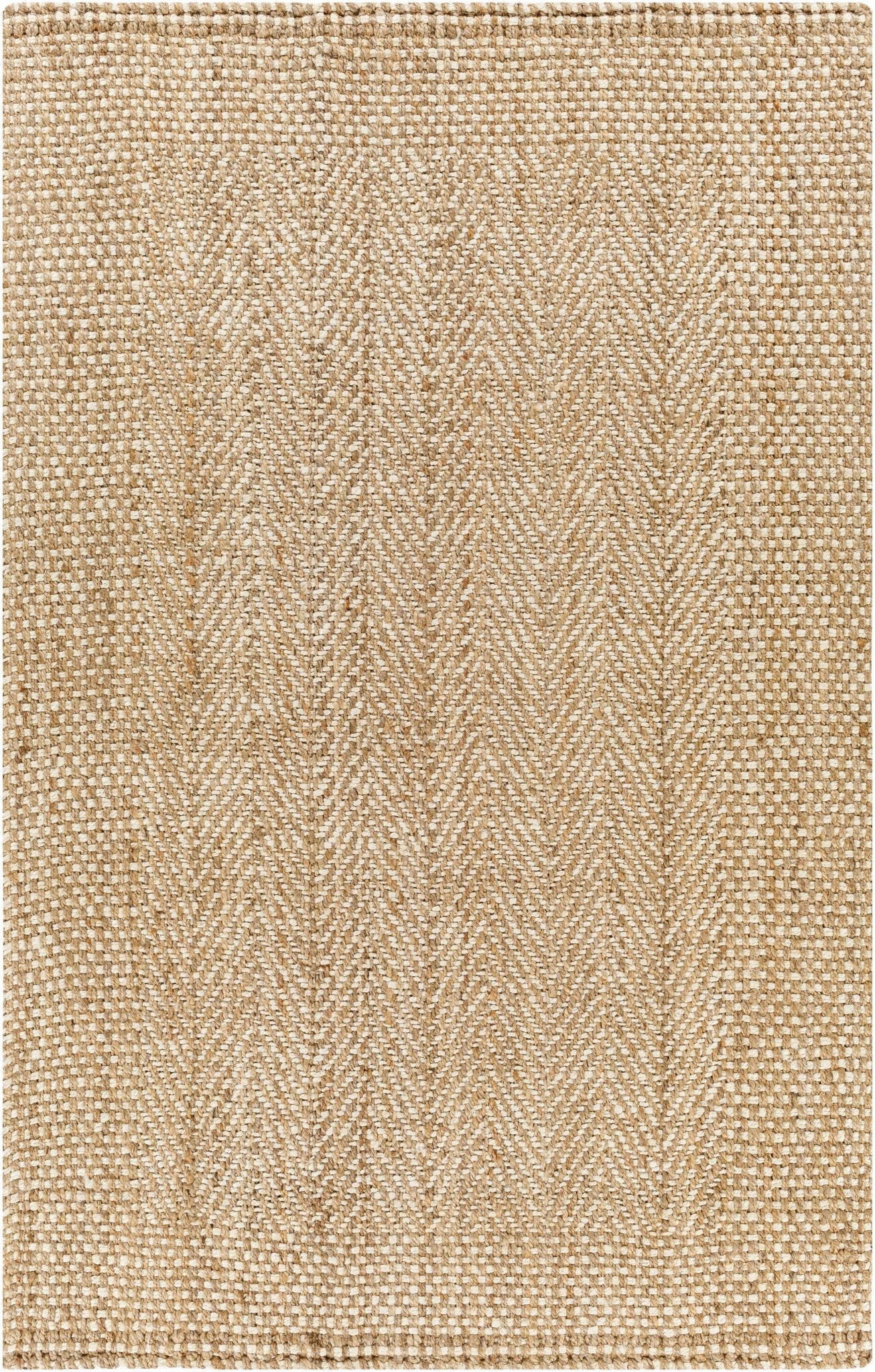 Hand Woven Ivory and Natural brown Chevron design Jute Braided Multi Size Rug