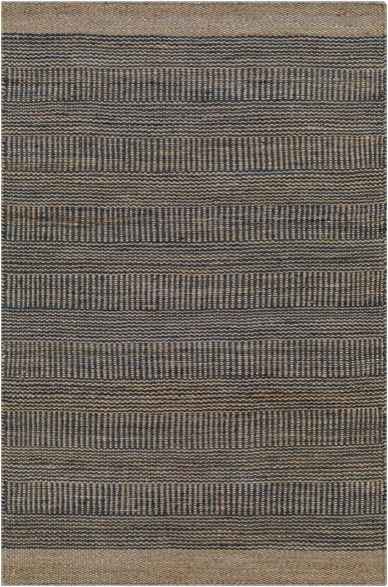 Hand Woven Natural Brown and Navy Blue Modern Stripes Design Jute Area Rug