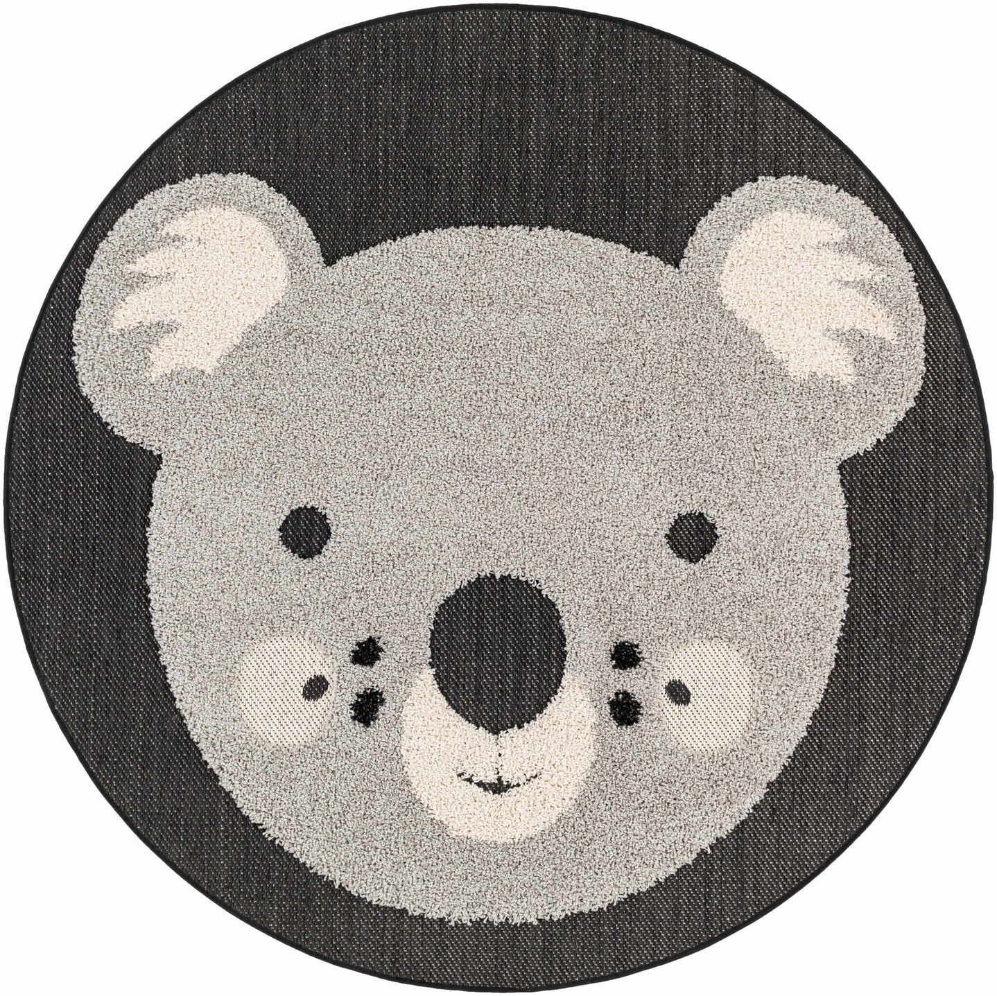 Kids Koala Gray, Black and Beige high low Texture out door safe Round Rug