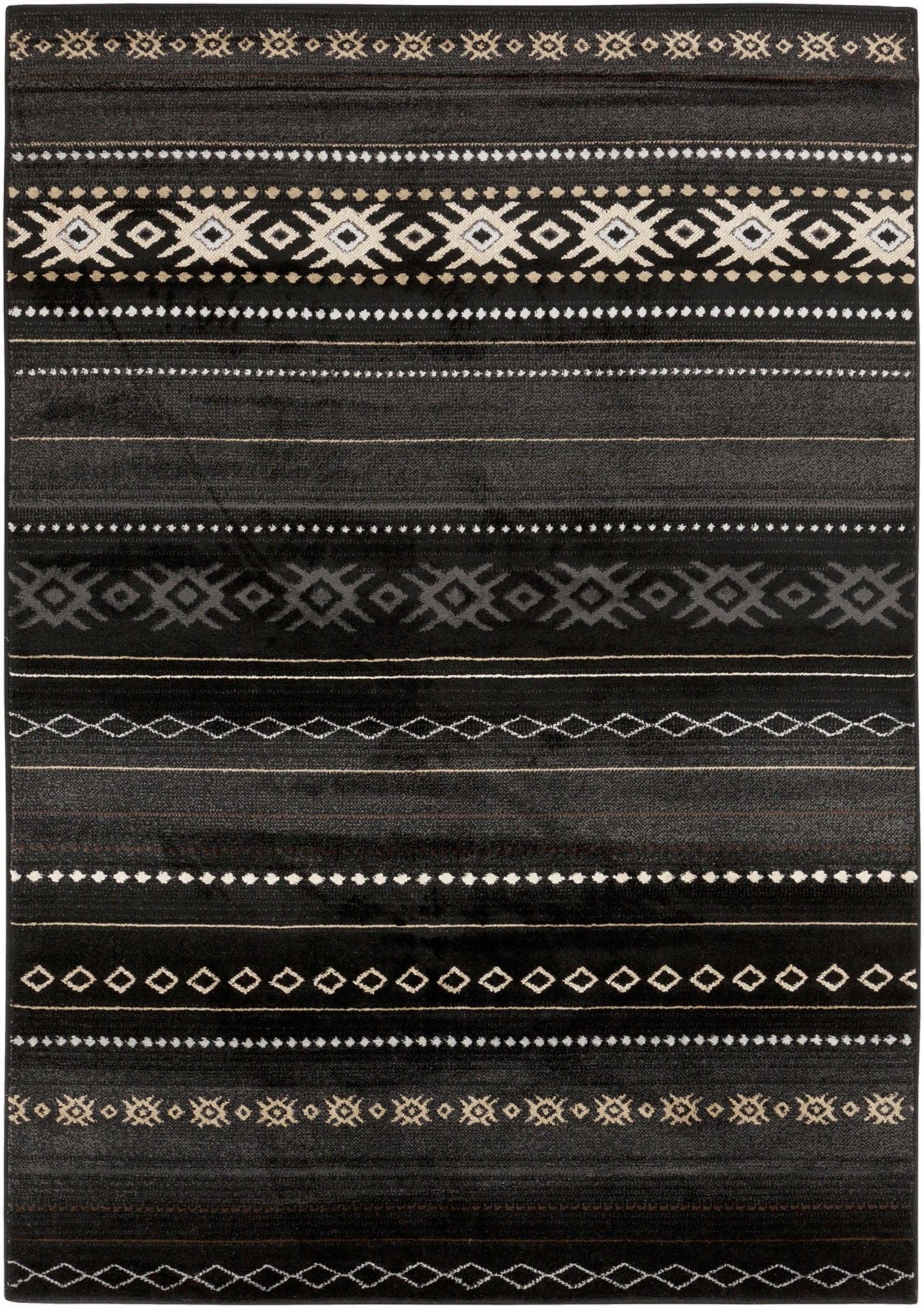 Tribal look Charcoal, Gray, Ivory and Tan Southwestern Stripes design Multi size Rug