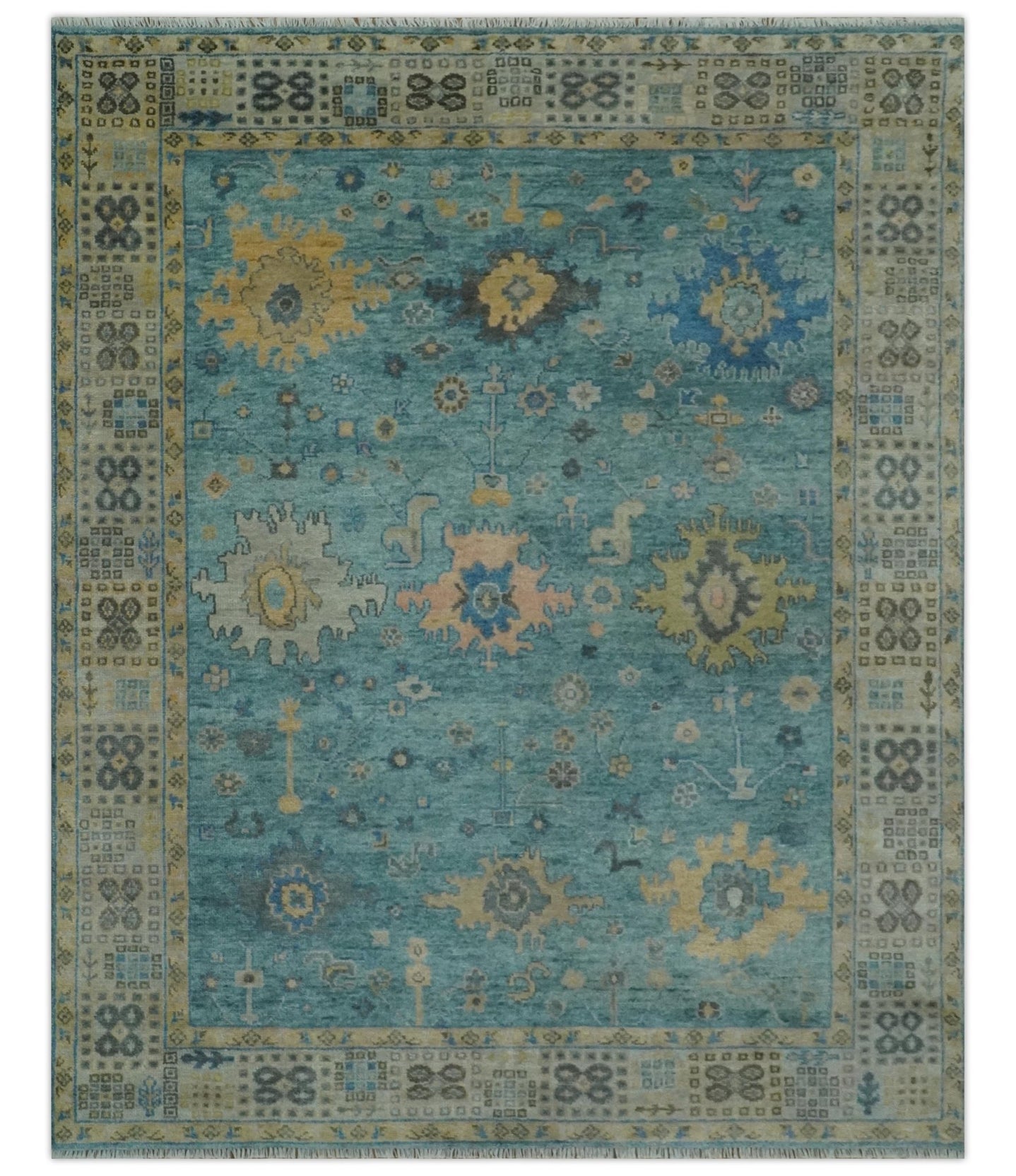 Tan, Brown, Green, Teal and Beige Traditional Donegal Floral ikat Design Area Rug