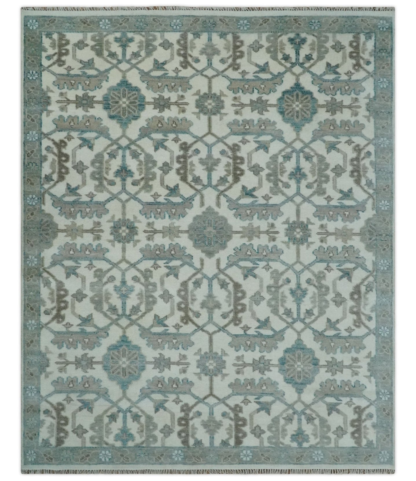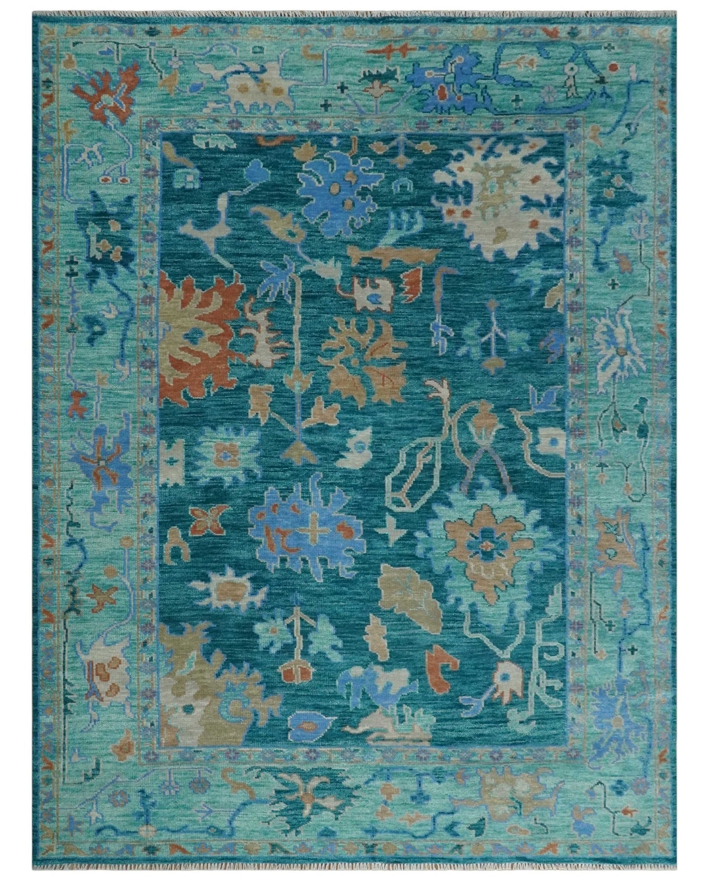 Hand Knotted Teal and Gold Traditional Oushak Multi Size Wool Area Rug