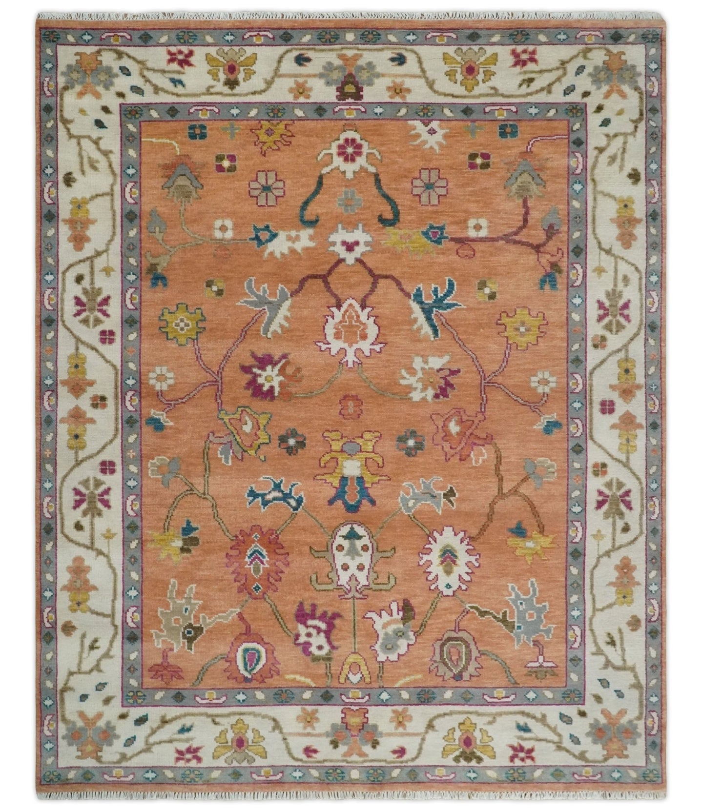 Peach and Ivory Hand knotted Oushak Custom Made wool Area Rug